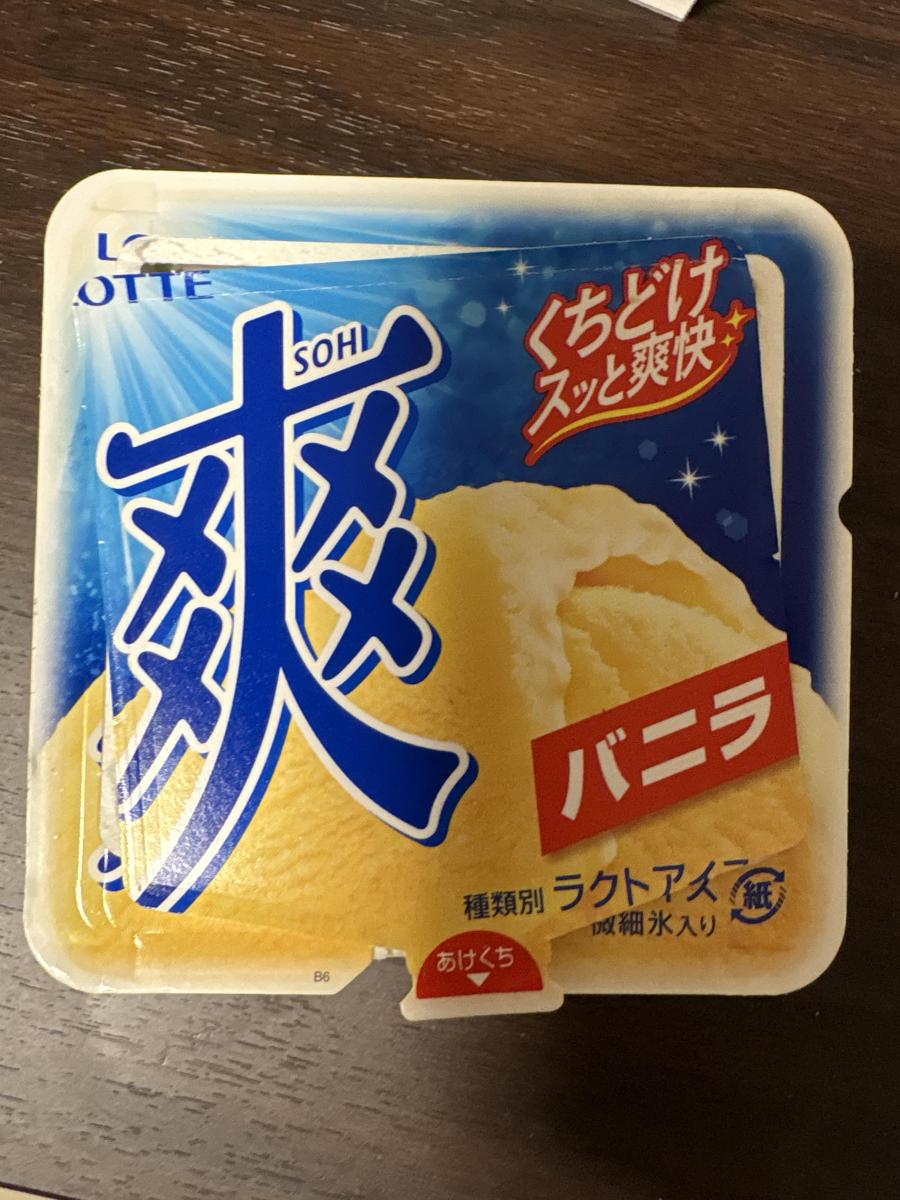 爽はシャリシャリのバニラが味わえるイメージなので、普通のバニラアイスとはちょっと違う立ち位置としてみてます。食感としてはあまり好まないタイプですが、たまーーーに食べると美味しい。笑