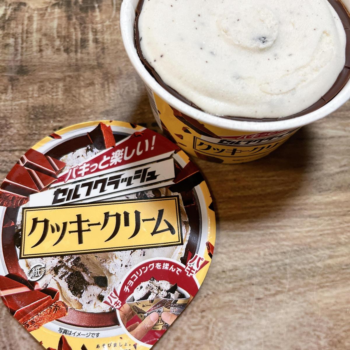 自分で砕くチョコの食感変化が楽しく、濃厚なクッキークリームとの相性も抜群です。遊び心があり、子どもから大人まで盛り上がれるアイスです。