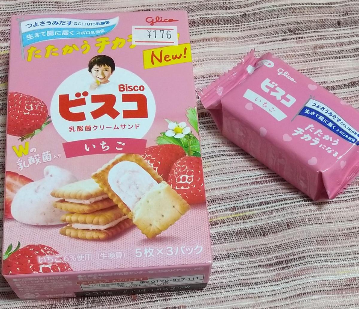 もともとビスコは好きだったのですが、今回久しぶりにこの貰い物のビスコを食べてみて「やっぱりおいしいなあ」としみじみ思いました。で、このいちご味、いちご味のお菓子の中でもかなり秀逸です。