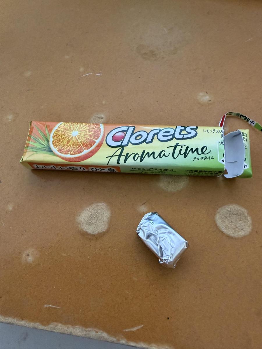 とっても香りが強くて、噛む程にレモングラスの優雅な香りとオレンジの甘さがジューシー。まさに「アロマタイム」。香りを味わうガム。クロレッツだからずっと噛み続けても硬さがあって味もなくなりにくい。けどいつものクロレッツに比べると味長持ちでないのが少し残念。