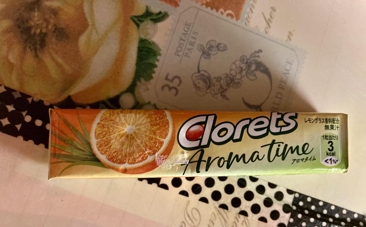 クロレッツの【アロマタイム】オレンジ味にレモングラスの香料が配合されている爽やかなガムです。