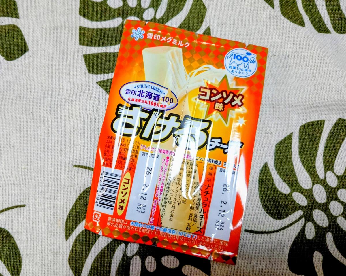 さけるチーズのコンソメ味がお店で安くなっていたので買ってみました。パッケージを開けると、おいしい香りがして、思っていたよりも食べやすい。いつもプレーン味に慣れていますが、たまには違う味もいいなと思いました。