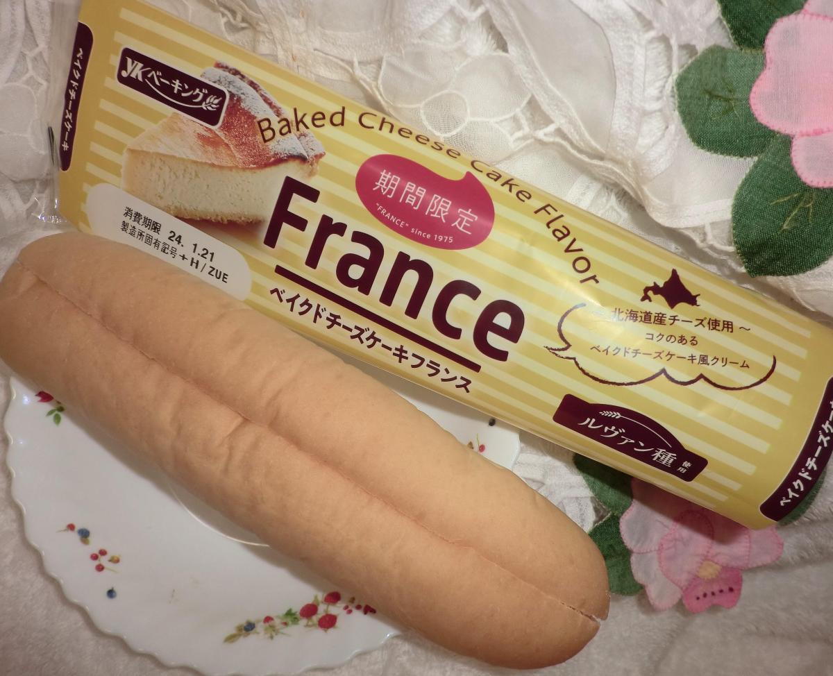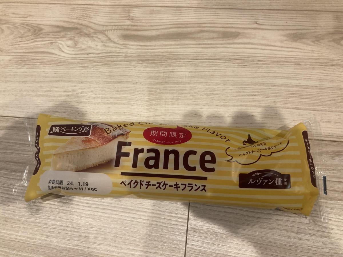 ベイクドチーズケーキフランスのネーミングに惹かれてどんな味か試したく購入してみました。もっちりソフトな食感のパンにサンドされた、北海道産チーズ使用の練乳のようなミルキー感のある、なめらかなベイクドチーズケーキ風クリームが、とってもおいしいです。期間限定ですが、定番化してほしい味わいでした。コスパもいいのでまた購入してみたいなと思いました。