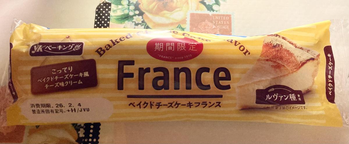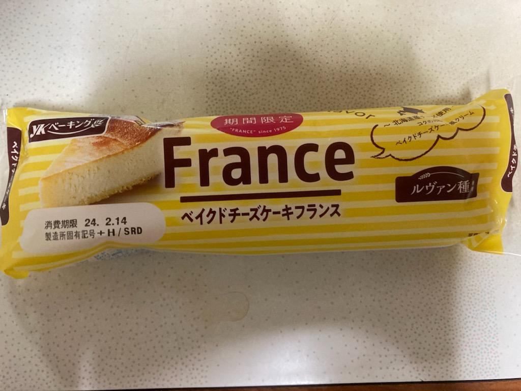 YKベーキングのソフトフランスシリーズは毎月のように新しいフレーバーば発売されていて楽しいですね。こちらのベイクドチーズケーキはややクセのある濃厚なチーズケーキの風味です。