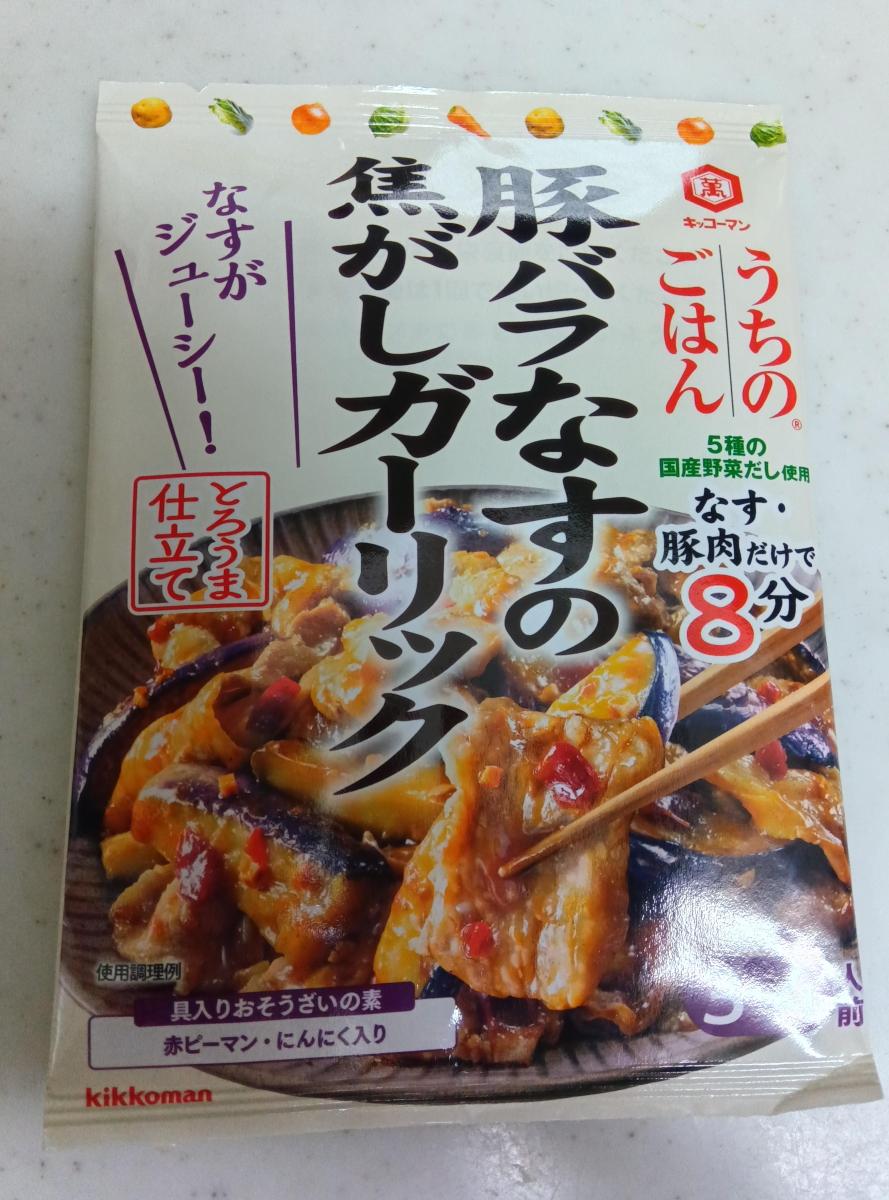 食べたことのないものは何かないかと探していて、こちらの、豚バラなすの焦がしガーリックを買ってみました。