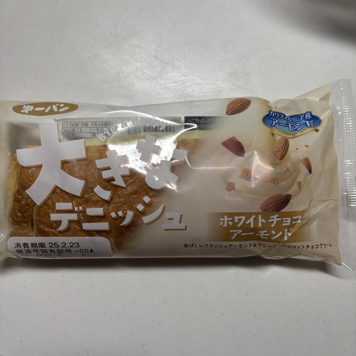 大きなデニッシュシリーズ大好きです!新しいフレーバーが出たので購入しました。ホワイトチョコなので甘いかな〜と思ったら、そこまで甘くなく朝からでも食べやすいです。アーモンドも良いアクセントです。リベイクして食べるとデニッシュがサクサクして美味しいのでおすすめです!