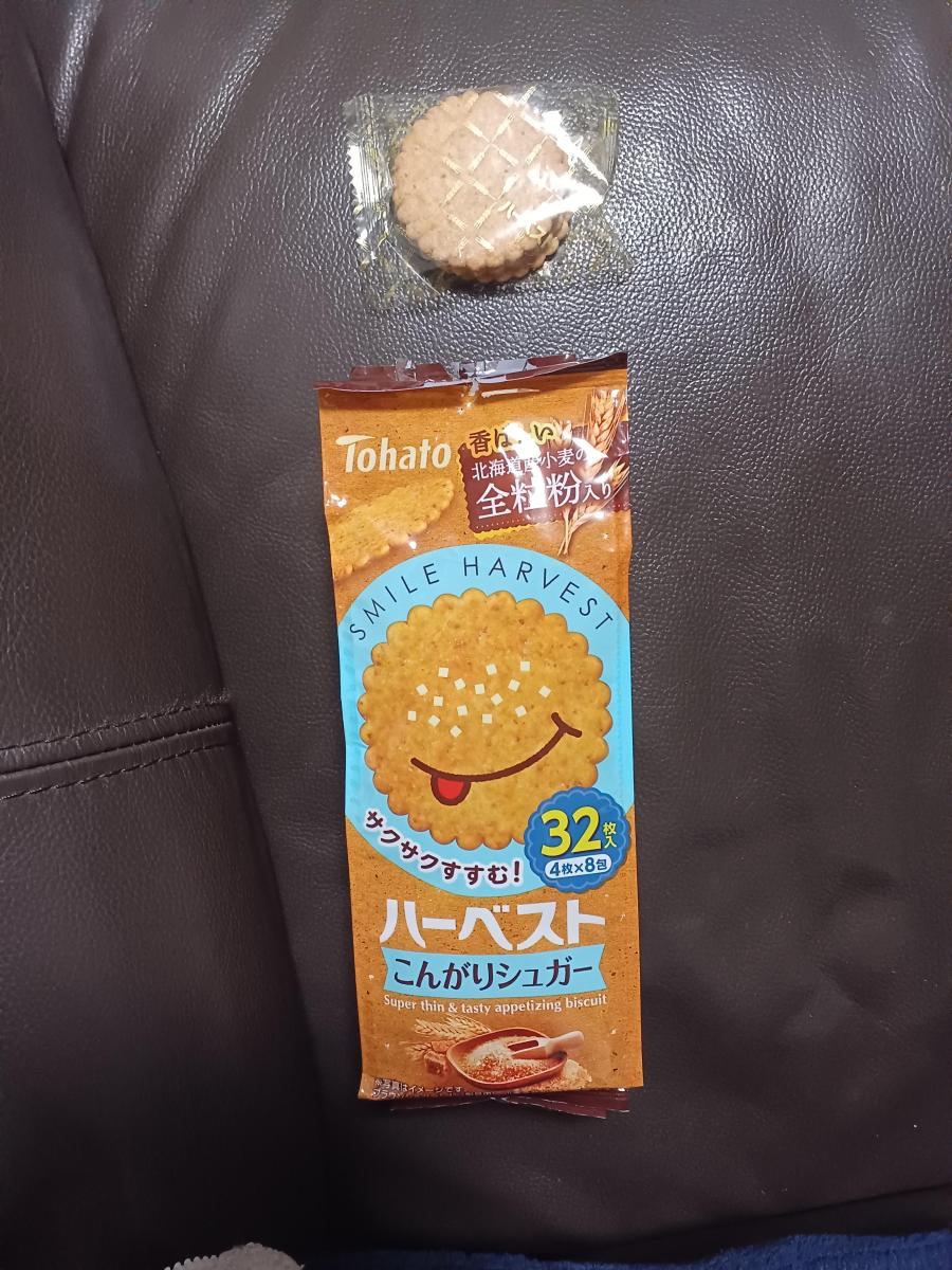 ブラウンシュガーが好きなので購入しました。生地には北海道産小麦の全粒粉が使われています。ブラウンシュガーの自然な甘さが、身体にとても優しく感じます。またココナッツも入ってそうですがココナッツの食感はほとんど感じません。ハーベスト独特のサクサクした生地とブラウンシュガーのコクのある甘さがとても合い、噛み締める度に体に染み渡り美味しいです。