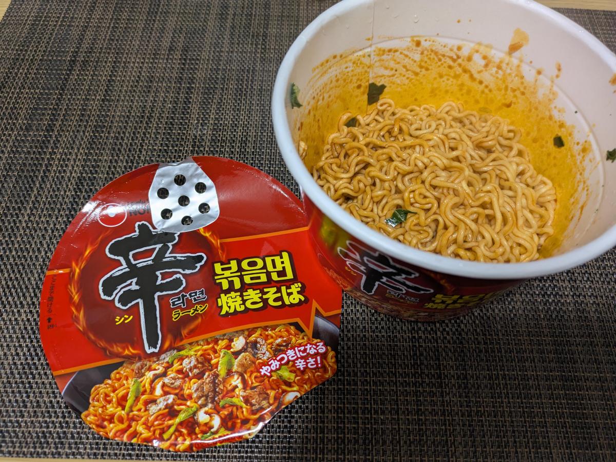 辛ラーメンシリーズの焼きそば。こちらはカップタイプだったので、手軽に食べられました。いつもラーメンだとあまり辛いと思わないのですが、焼きそばはとても辛く感じました。でも旨みもしっかりあるので、やみつきになる辛さ。焼きそばの方が好きかもしれないと思いました。
