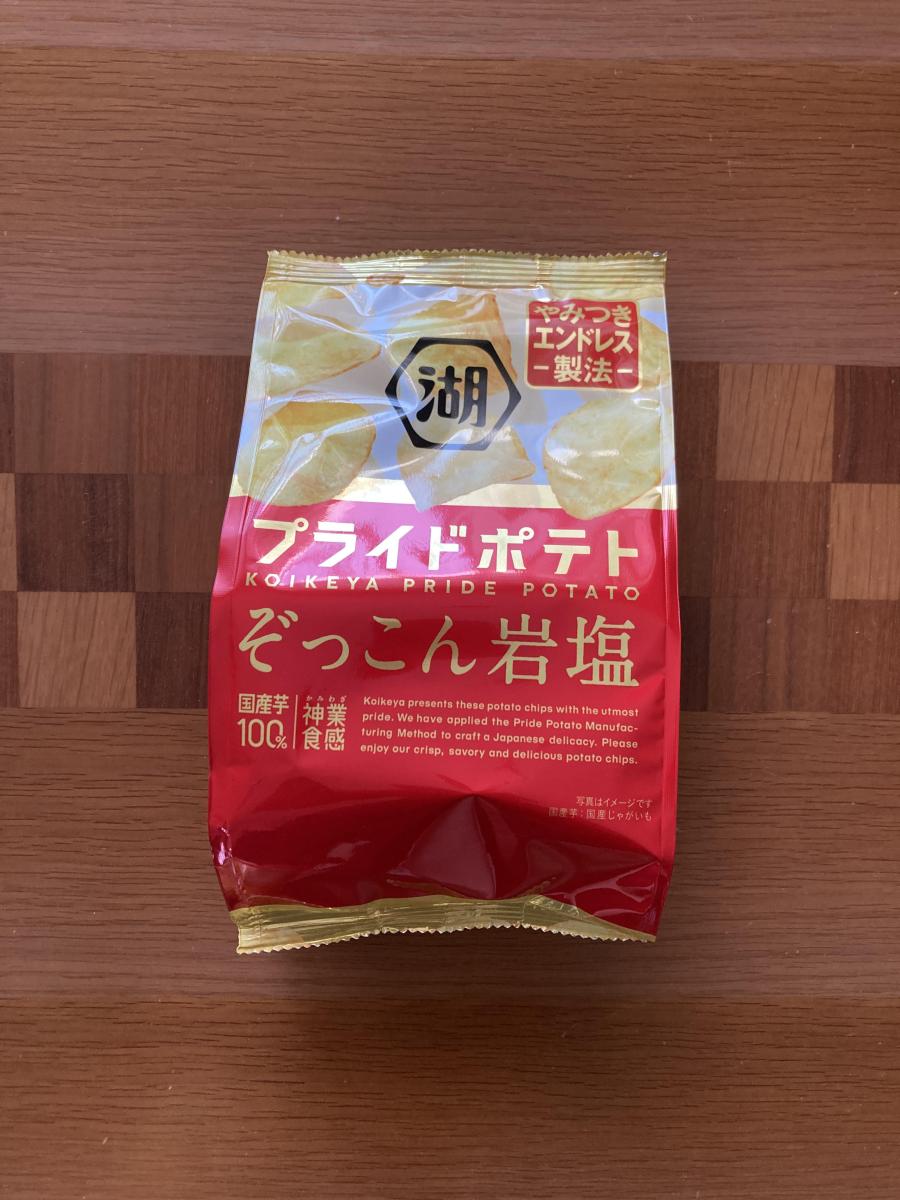 湖池屋 プライドポテト ぞっこん岩塩食べてみました。一言ですごく美味しいポテトチップスです。