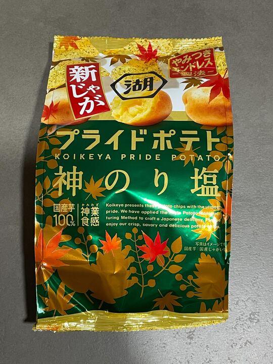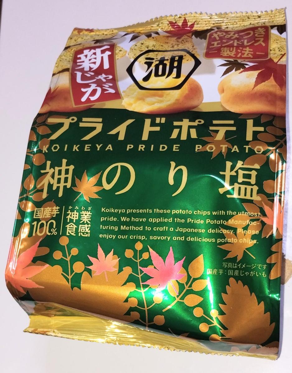 神がかった美味しさ、とパッケージ説明にのせてしまうほどのゴリゴリのプライドを顕にする湖池屋さんのプライドシリーズ。大変おいしいです。三度の温度違いの揚げに3種のノリ、ちょっぴり唐辛子が入っているそうです。