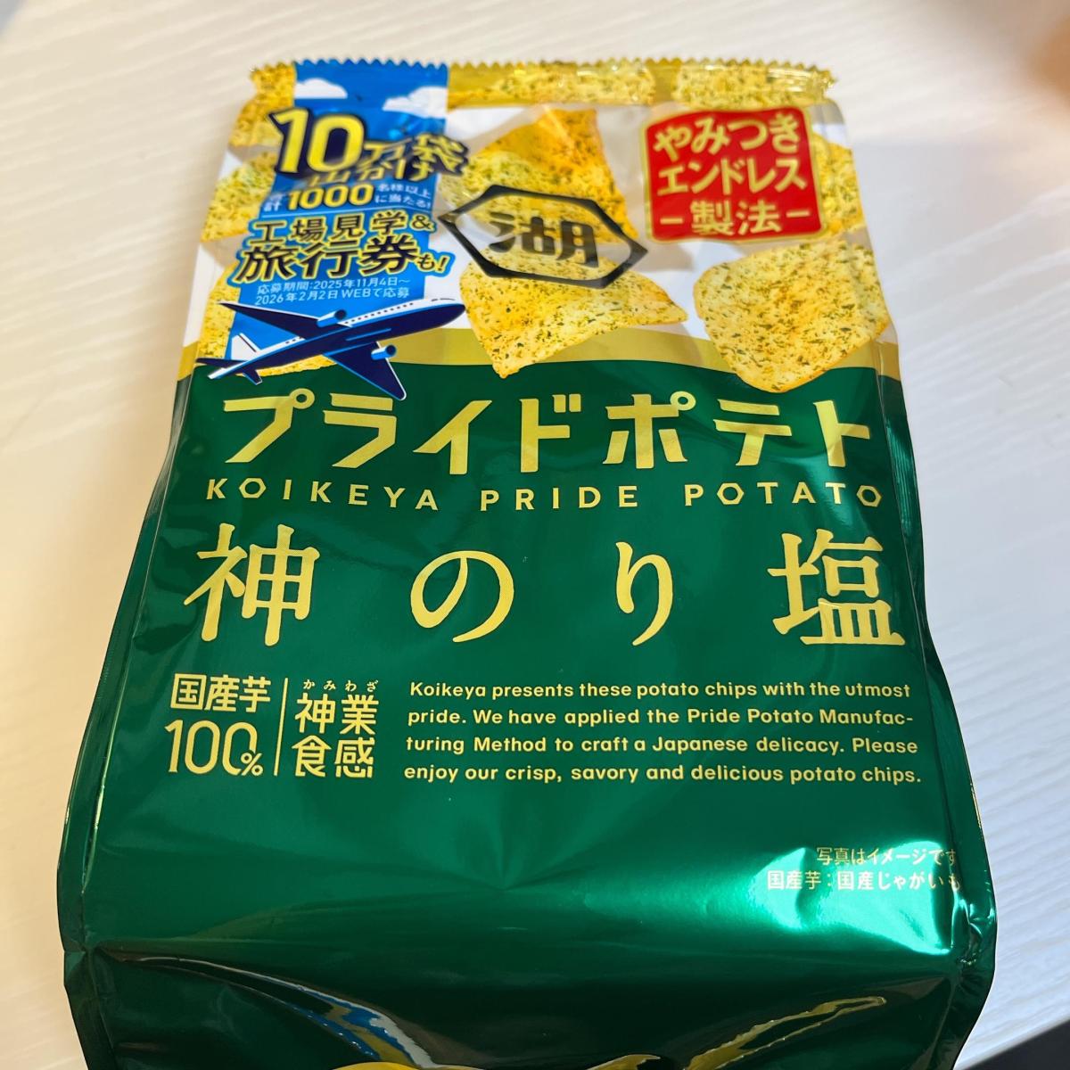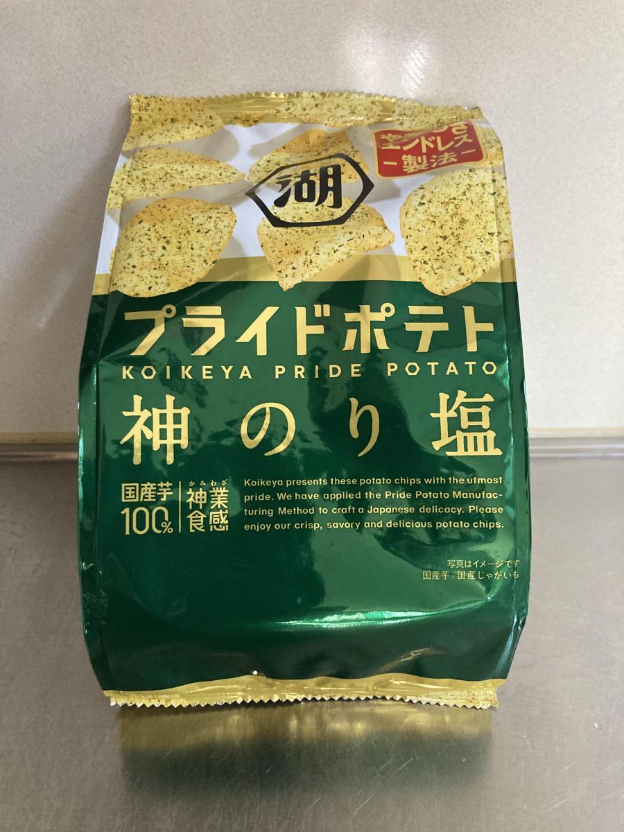 スーパーでお安くなってたので思わず購入。普段はカルビー派ですが湖池屋のプライドをっけてるシリーズなので、好きなのり塩味からいざ実食!