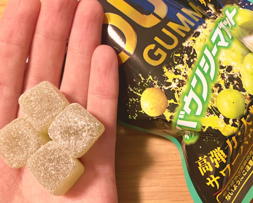食べてみると、かなりかみごたえのグミで、マスカットの酸味も効いていて、美味しく食べることができました。