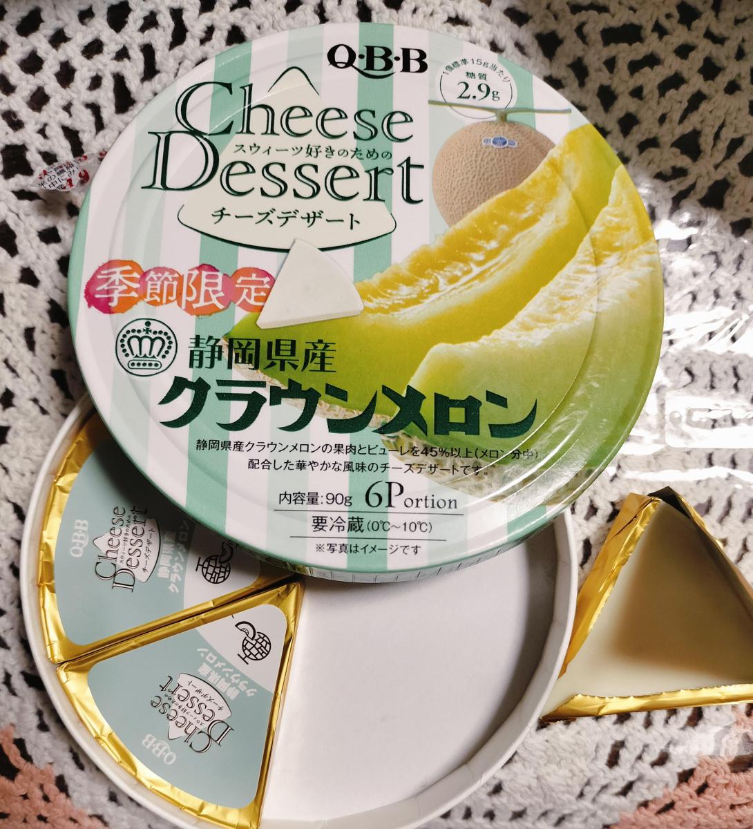 パッケージのクラウンメロンがおいしそうで手に取っていました。しかし、チーズとメロンって合うのかな…という疑問も同時に浮かんで来ました。今までのチーズデザートシリーズにハズレはなかったとQBBさんを信じて購入しました。