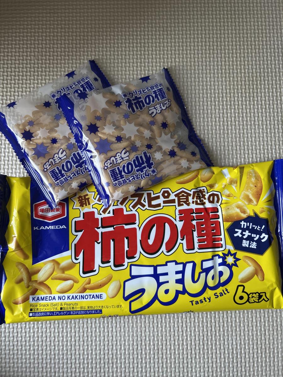 ノーマルな柿の種と少し食感が違って、カリッとした歯応えです。止まらなくなる塩味と、ピーナッツのアクセントも最高です。小袋なのでちょうど食べやすいです。