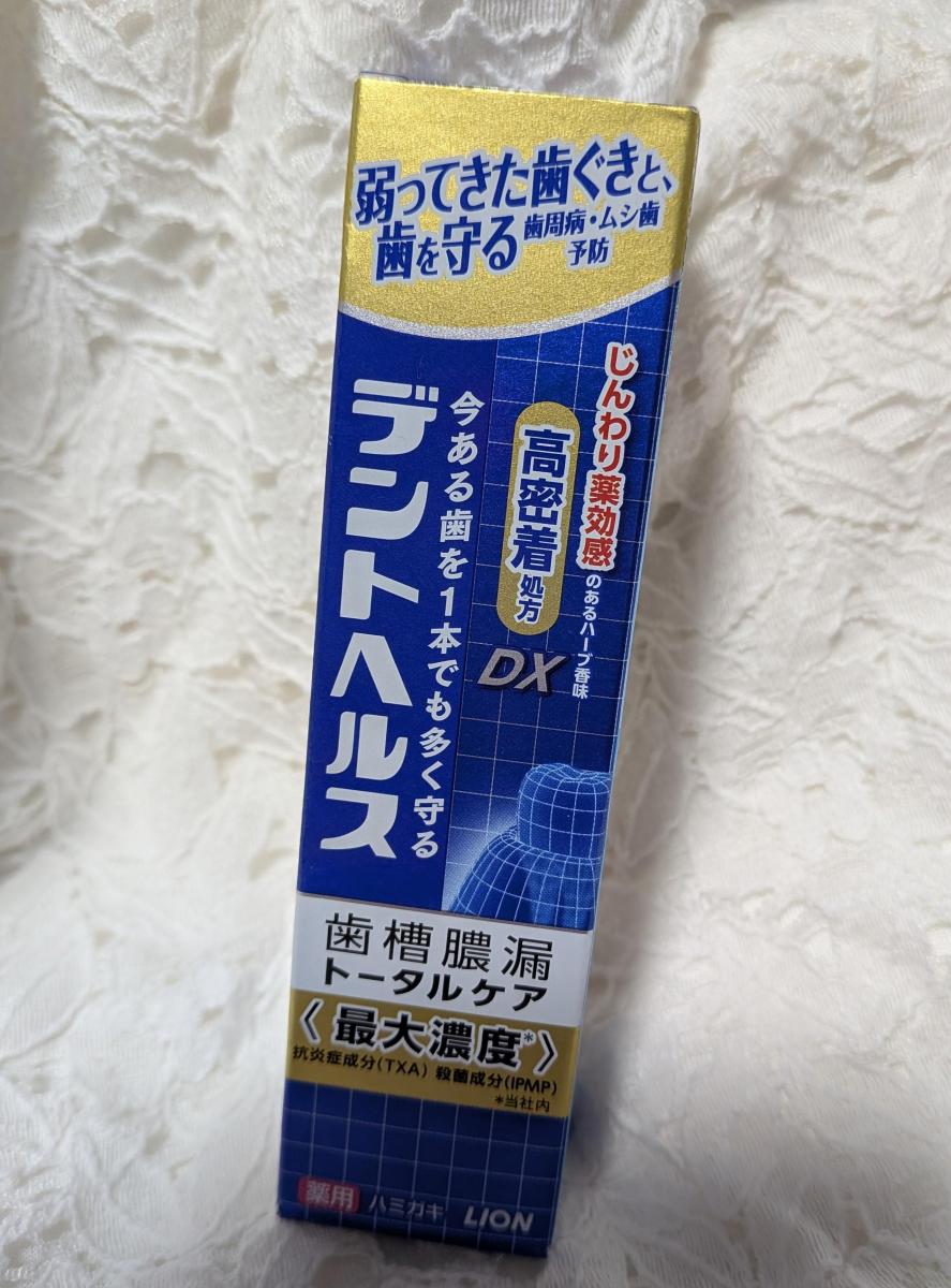 歯磨き後口をすすいでも歯磨き粉のペーストが口の中に残る感覚が苦手で、なかなか自分に合うものが見つかりませんでした。デントヘルスは磨いている時の使用感、口をすすいだ後の爽快感が良く口の中にペーストが残る感覚がなく気に入りました。においは薬っぽいけど歯や歯ぐきに浸透密着している感じがして好きです。