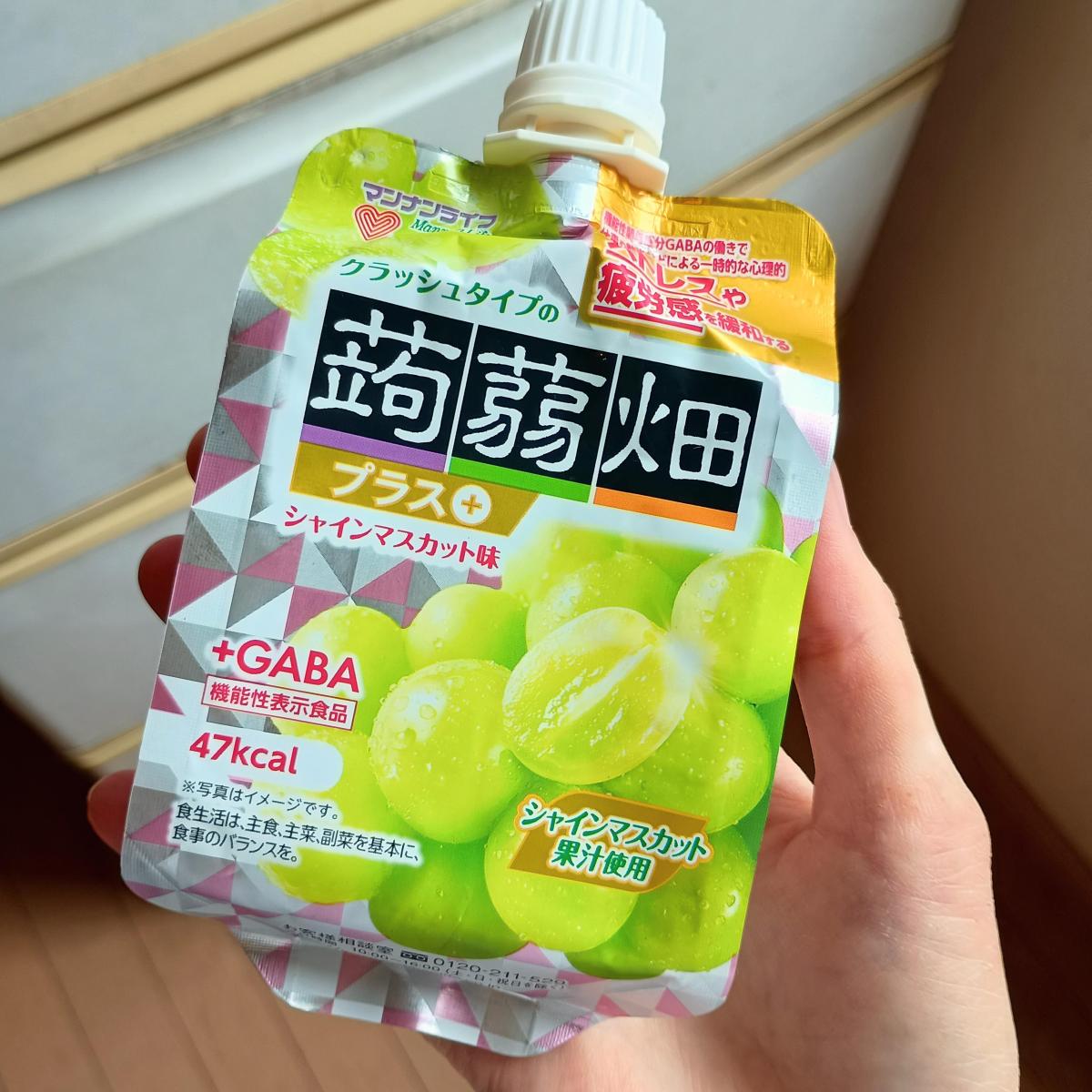さわやかなマスカット味で、クラッシュされたこんにゃくゼリーの弾力があり食べ応えがあります。腹持ちは残念ながらよくなく感じましたが、GABAの効果に期待したいです。