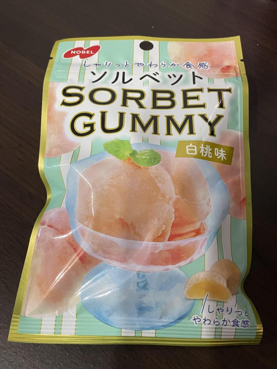 ソルベットグミで白桃味とどんな食感なのか気になり購入してみました。食べてみると、シャーベットのようなシャリシャリでなめらかな食感とグミみたいな柔らかさが合わさって新食感で美味しいです。柔らかくてシャリっとしていて、やみつきになります。そして白桃の爽やかな甘味がとてもおいしい味わいでした。