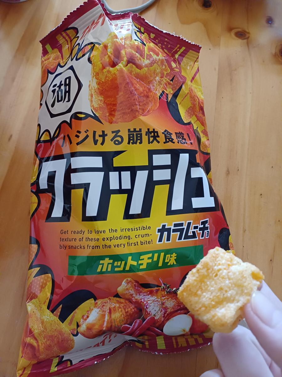 ホットチリの辛みはあとに残るような辛さです。辛さには構えていましたが辛みが苦手でも旨辛で食べれそうな味です。層があるので食感も軽く食べやすいです。