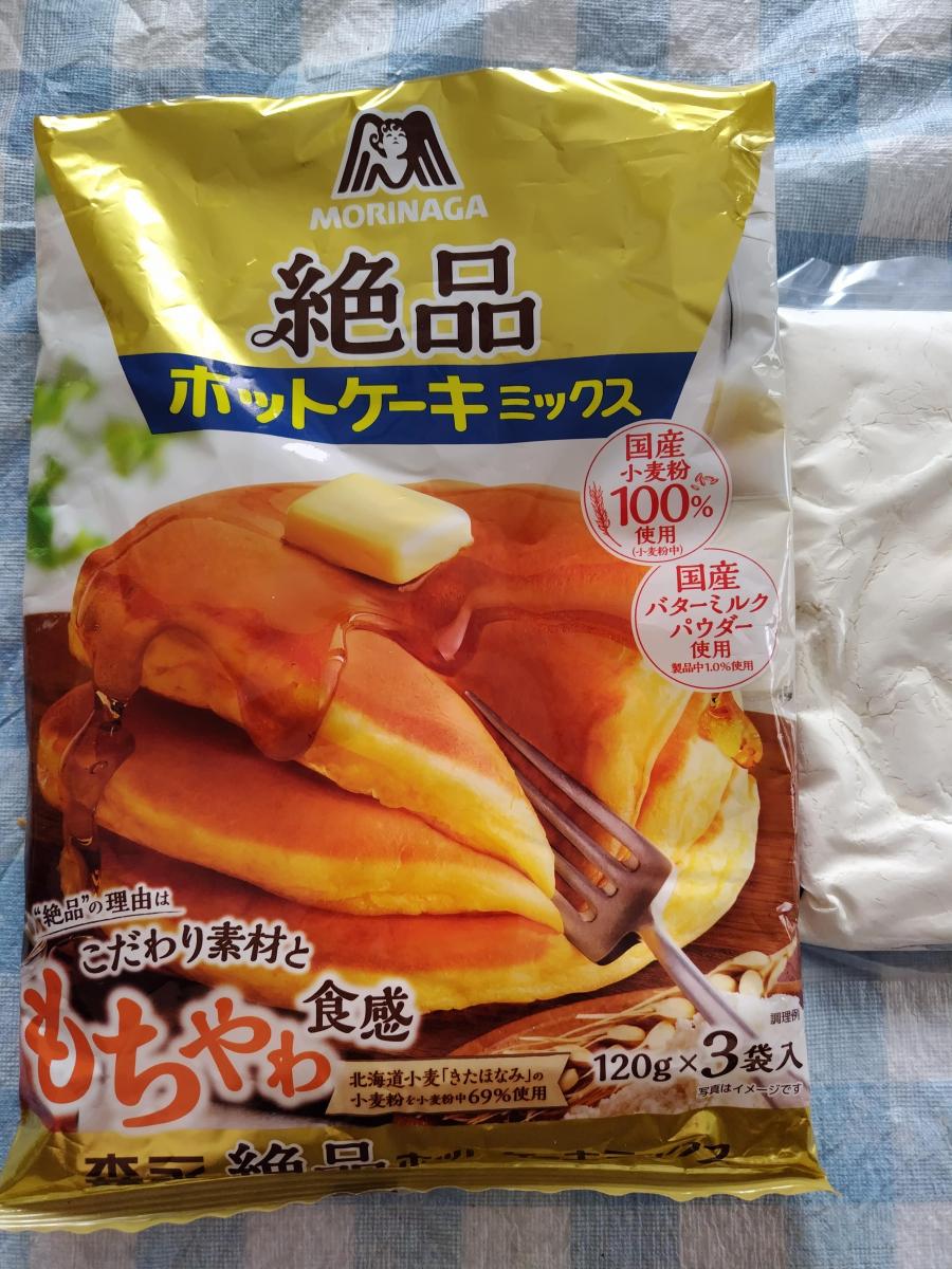 一袋3枚というのは何人分なんだろう?全量で一枚の焼き方ものっていて興味深かったのですが一人分?うちではいつも卵1個で4枚焼くので牛乳の量を少し増やしてみたら生地はもちろんゆるくなって薄いアメリカンなパンケーキみたいになりました。でも食べるともちもち。薄いのにもちもちスゴくない?ちょっと高いしいつもは買えないけどたまに買ってみてもいいかなと思いました。