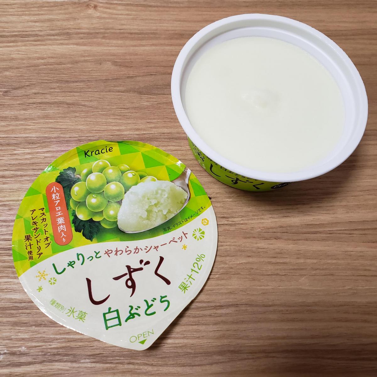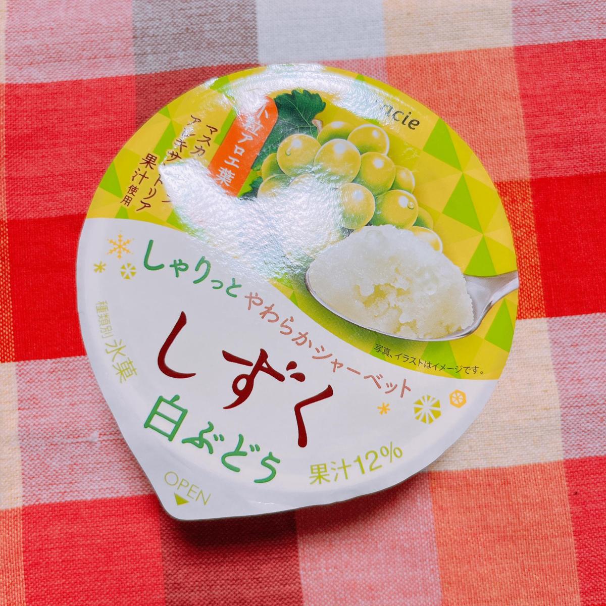 シャーベットの食感も滑らかで、口当たりも良いです。シャーベットを口に入れた時に、白ぶどうの香りが鼻まで届き、心地よいです。これからの暑い時期にも食べたいですね。