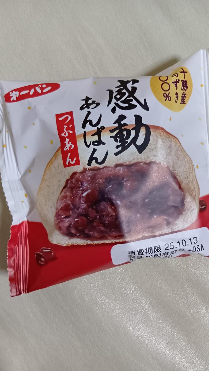 感動あんぱんという商品名が気になり買ってみました。食べてみると商品名通りで中のつぶあんが甘さ控えめで小豆の味わいがしっかりあり、食感もまろやかでこだわりを感じます。