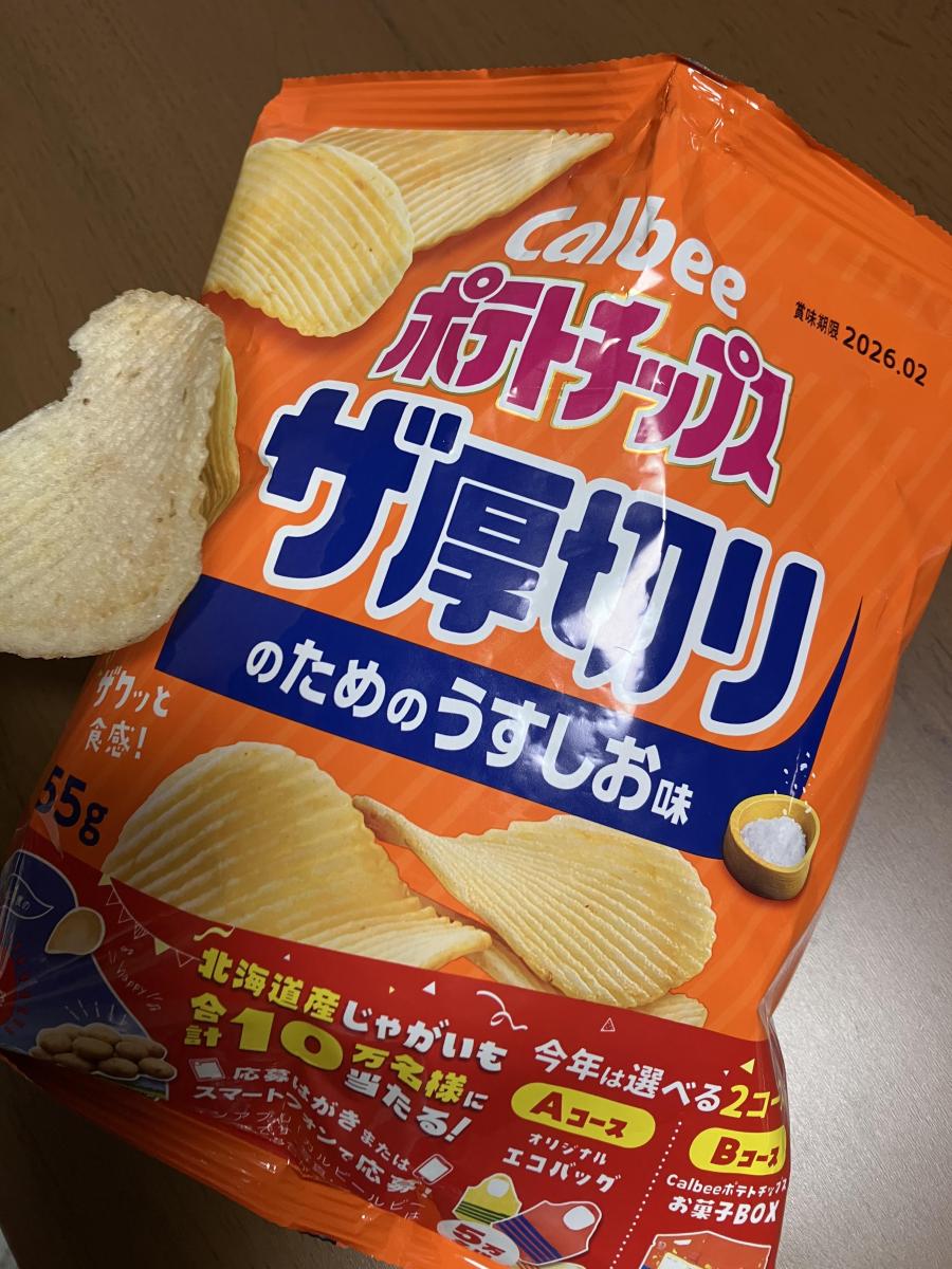 ギザギザの波型で厚切り、だから歯ごたえが抜群に良いです。塩加減も抑えめでヘルシーなポテトチップスだと思います。内容量が多くないのでひとりで一回で食べ切れます。他のラインナップも食べてみたいと思います。