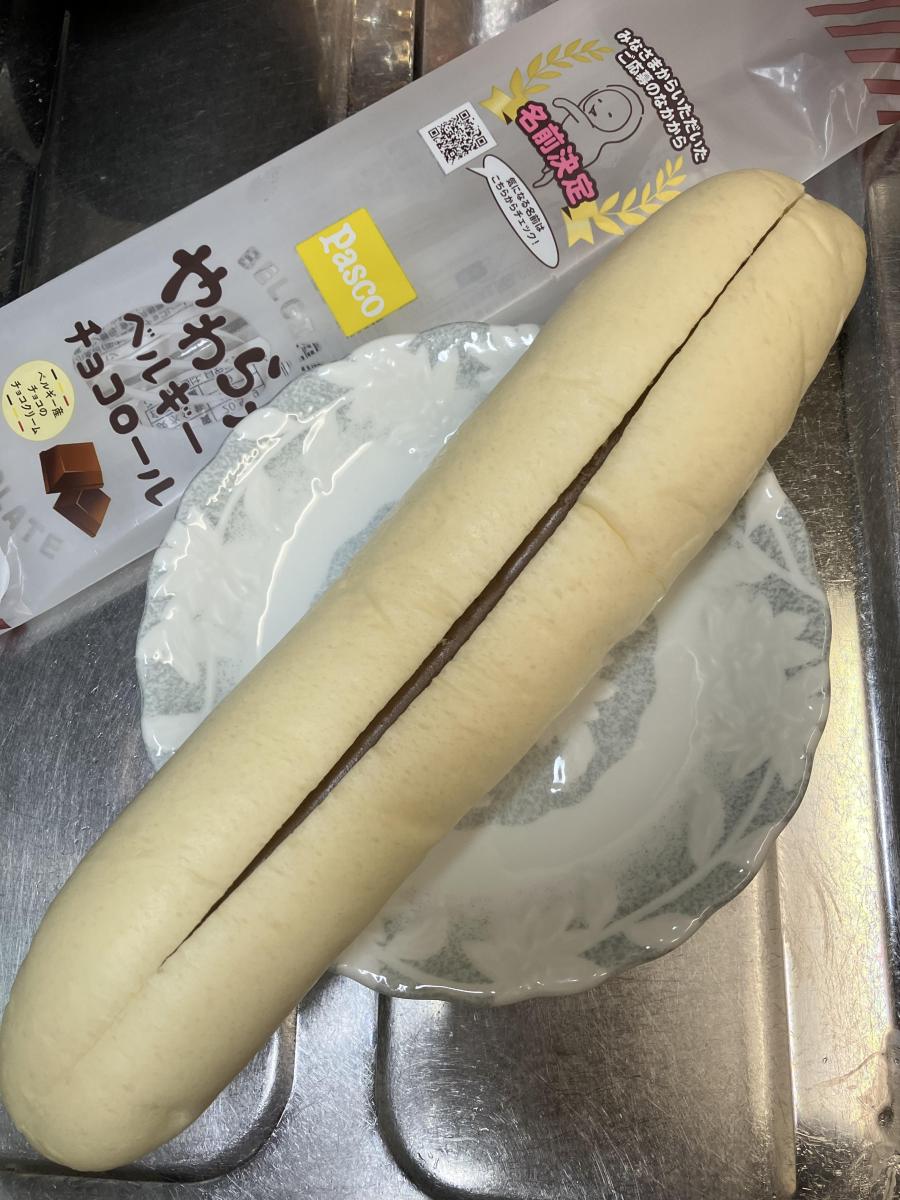もう一つのミルククリームのが美味しかったので、ベルギーチョコロールも買ってみました。白いパンは持つとくねっと折れ曲がるほどの柔らかしっとりパンです!ふわふわもっちりですごく美味しいです!