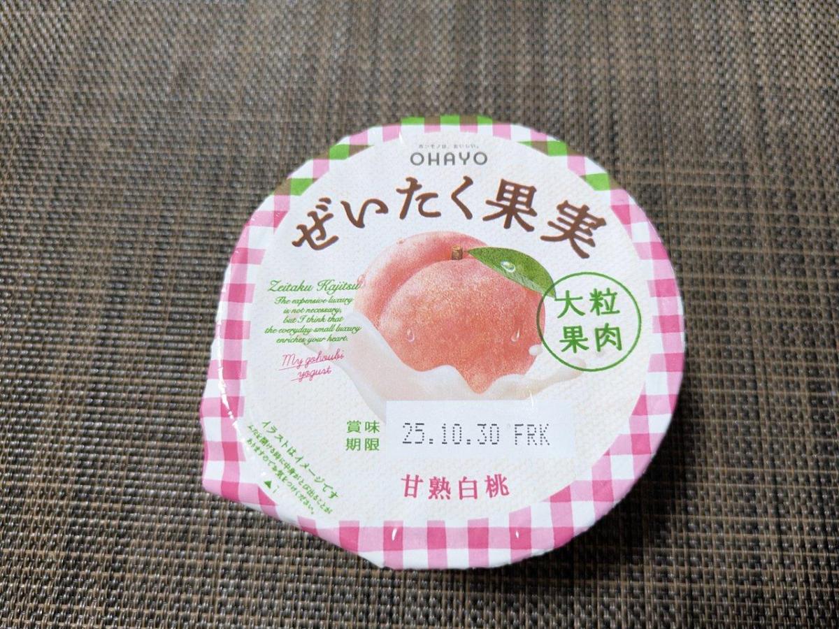 桃の大きめフルーツが入っており、贅沢感を味わえます。時間をかけて食べたいので朝食よりもおやつの時間に食べています。幸せな気持ちになります。