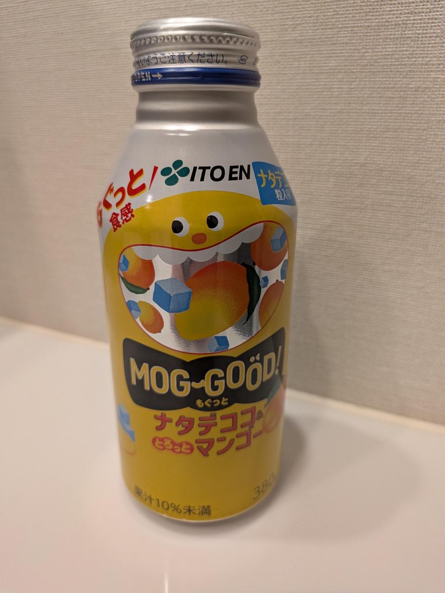 甘みの強いマンゴー味のジュースは少しとろみがあり、飲みごたえがありました。もう少し甘さ控えめでもよかった気がしますが、マンゴー味だと強い甘味を期待するので、これくらい甘めでもよかったです。特筆すべきはナタデココ。安全性のためか小さめの粒でしたが、たっぷり入っていたので、名前の通りもぐもぐできるくらいの量で満足感がありました。食べ応えがあってとてもよかったです。ボトル缶の口が広めになっていて、最後のナタデココ一粒まで残さず食べることができたので、缶のチョイスもとても素晴らしかったです。