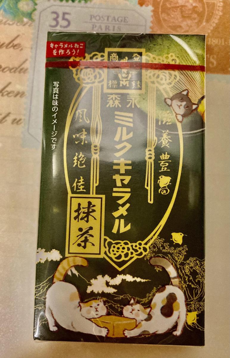 懐かしい感じの箱に入った森永ミルクキャラメルが、深みのあるグリーンの色になって、抹茶味のタイプが出ていました。片手に収まる箱入りのキャラメルは、昭和の人間の自分には、たまりません。