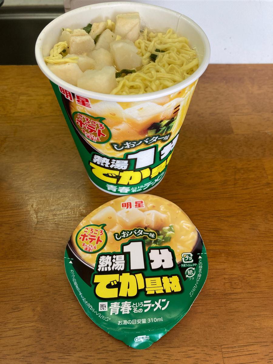 具のポテトがゴロゴロと入っていて、食べ応えがあります。スープの塩バター味は濃厚で、具や、麺とよく絡み、美味しかったです。熱湯1分で、出来るので、早く食べられて忙しい時などに便利ですね。塩味はやや濃いめですが、夏の塩分補給にもいいかもです。