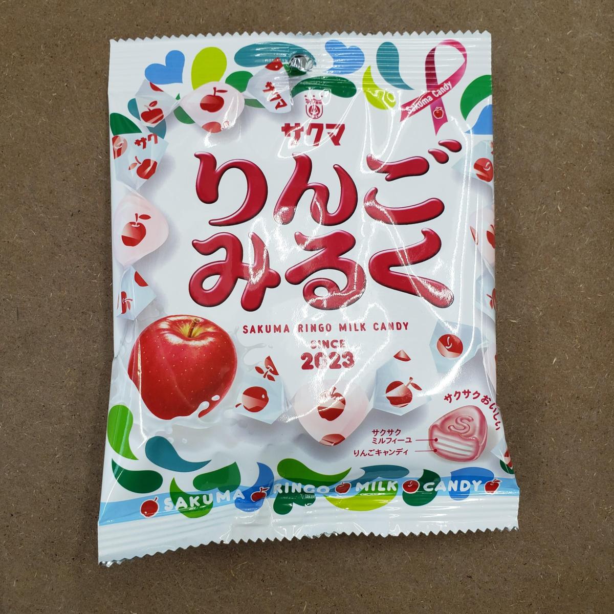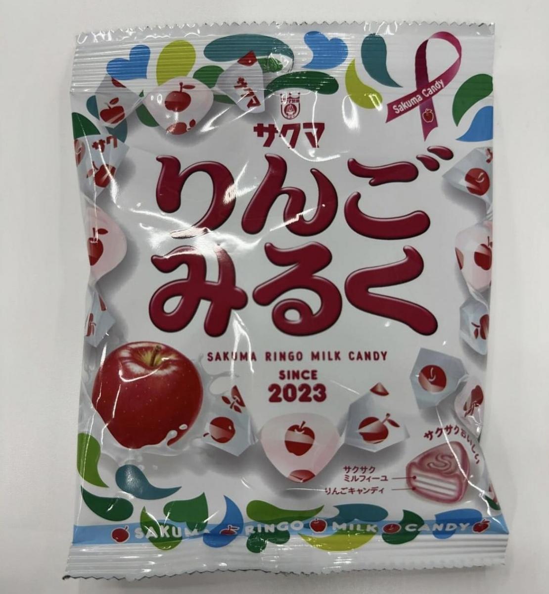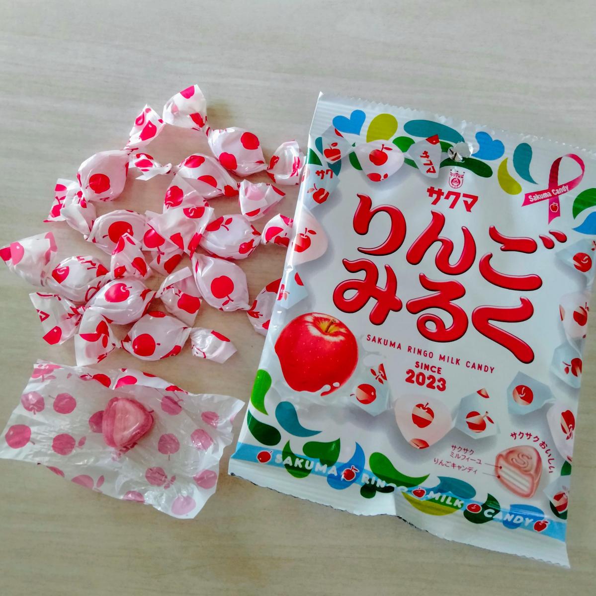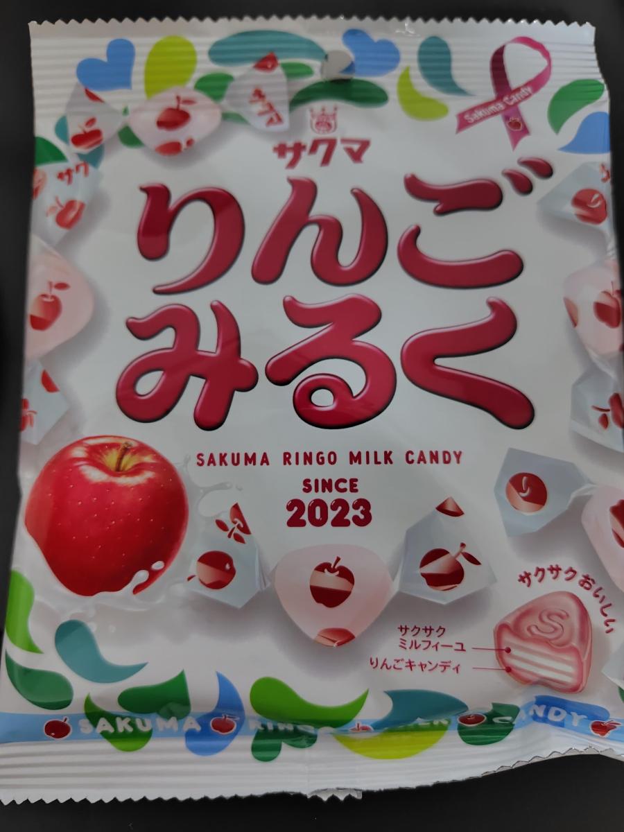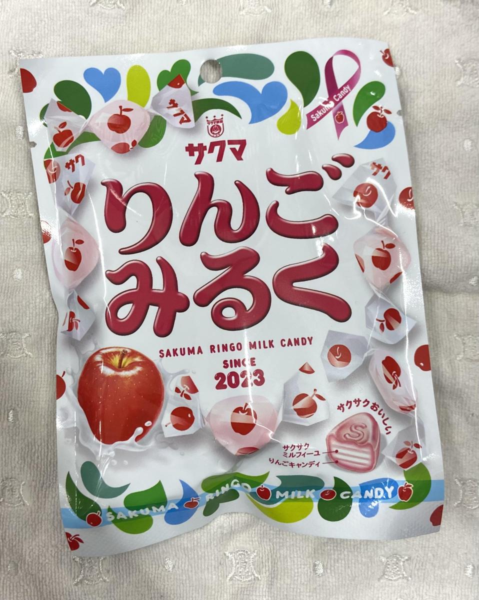 サクマにりんご味が出ていたので気になり購入してみました。パッケージもかわいいです。中の包み紙もリンゴ模様でかわいいです。個人的に一回は噛んでザクザクを感じるのが好きです。最初はりんごの優しい甘さ、なめていくうちに中のサクサク練乳味のキャンディ部分が出てきて大変美味しいです。リンゴ味も美味しかったのでまた購入してみたいなと思いました。