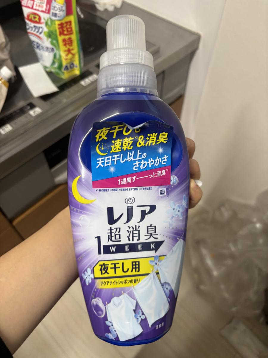 毎日洗濯をするのが夜なので夜干し用の柔軟剤を購入してみました。1week超消臭の文字に惹かれました!使ってみるとシャボン系のほんのりしたいい香りがしてきました。速乾と消臭で夜部屋干ししても全く気にならないほど消臭効果がよかったです。使い始めなので1week消臭の効果はまだわかりませんが期待大です!!