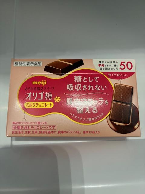ピンク系の、砂糖入りというオリゴ糖チョコレートです。使用する砂糖の半分をオリゴ糖に置き換えたということで、50とついています。