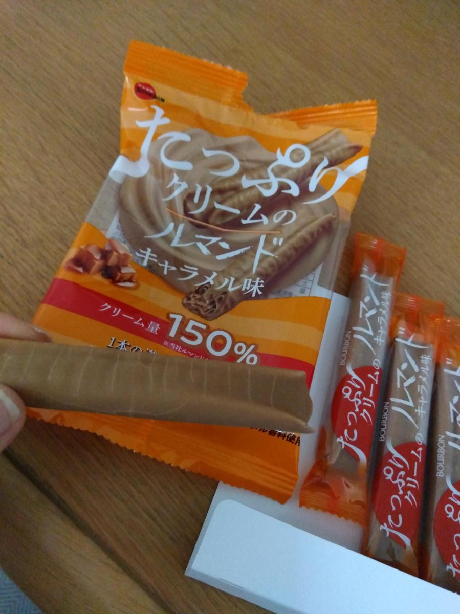 ルマンドはふつうのココアクリームしか食べたこと無かったから初めてのキャラメル味。