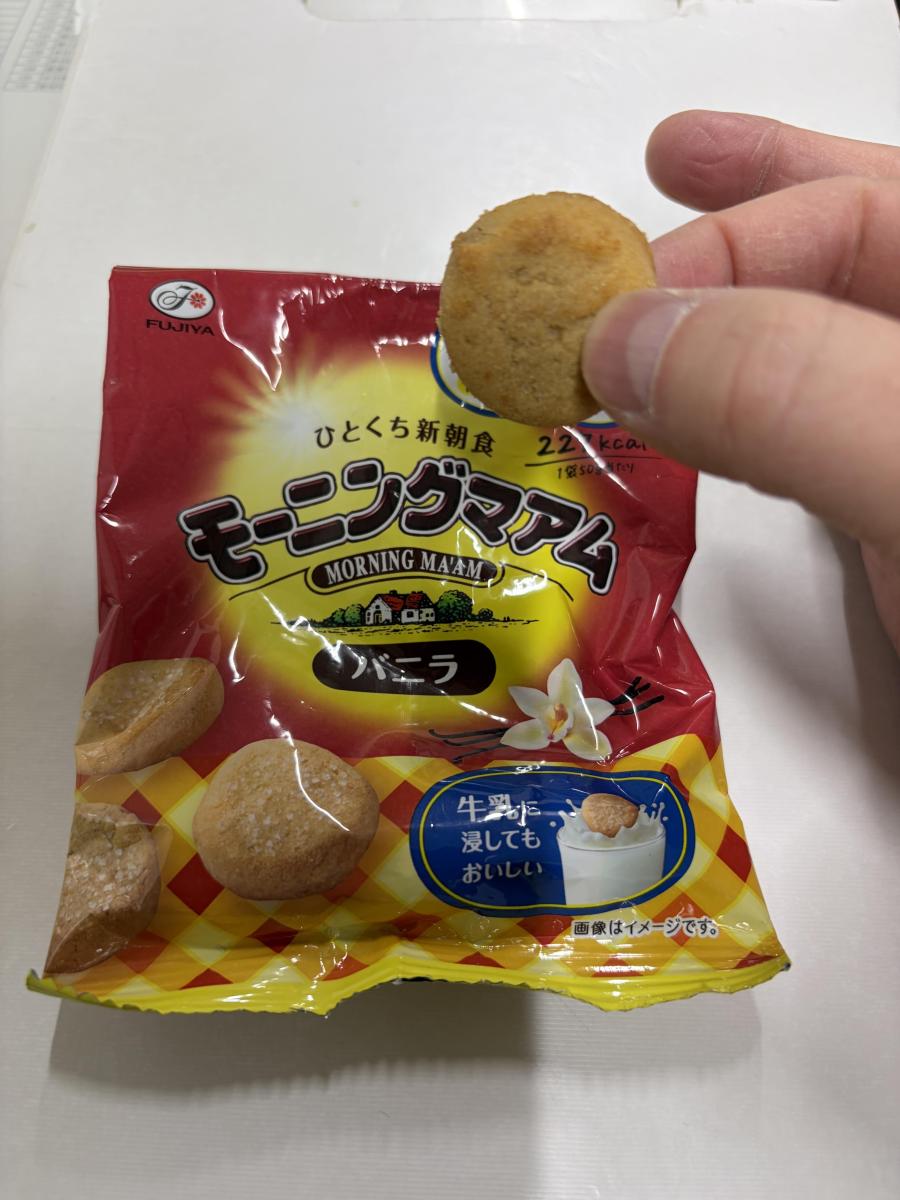 本当に時間がない朝、カバンに入れて、ちょこちょこっと食べることがあります。あまりコスパは良く無いけど、ひと口サイズなので、ポイっと口に入れられるところが良いです。甘いカントリーマアムで、糖分補給、朝、少しお腹の足しになります。パッケージに牛乳に浸してもおいしいとありますが、ちょっと抵抗感あります。