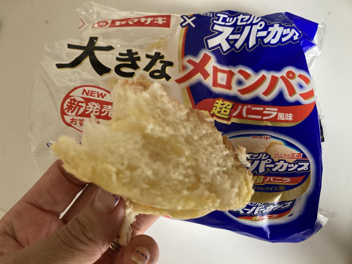 スーパーカップが好きなので試しに買って見ました。メロンパンの生地がしっとりして食べて行くと中のクリームがスーパーカップを連想させるバニラで美味しいかったです。これが、期間限定なんてもったいないです。