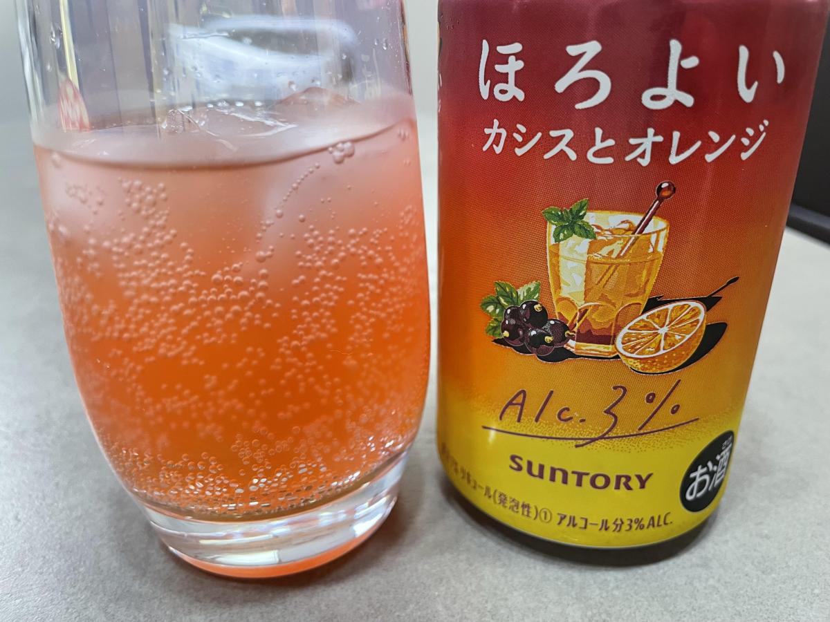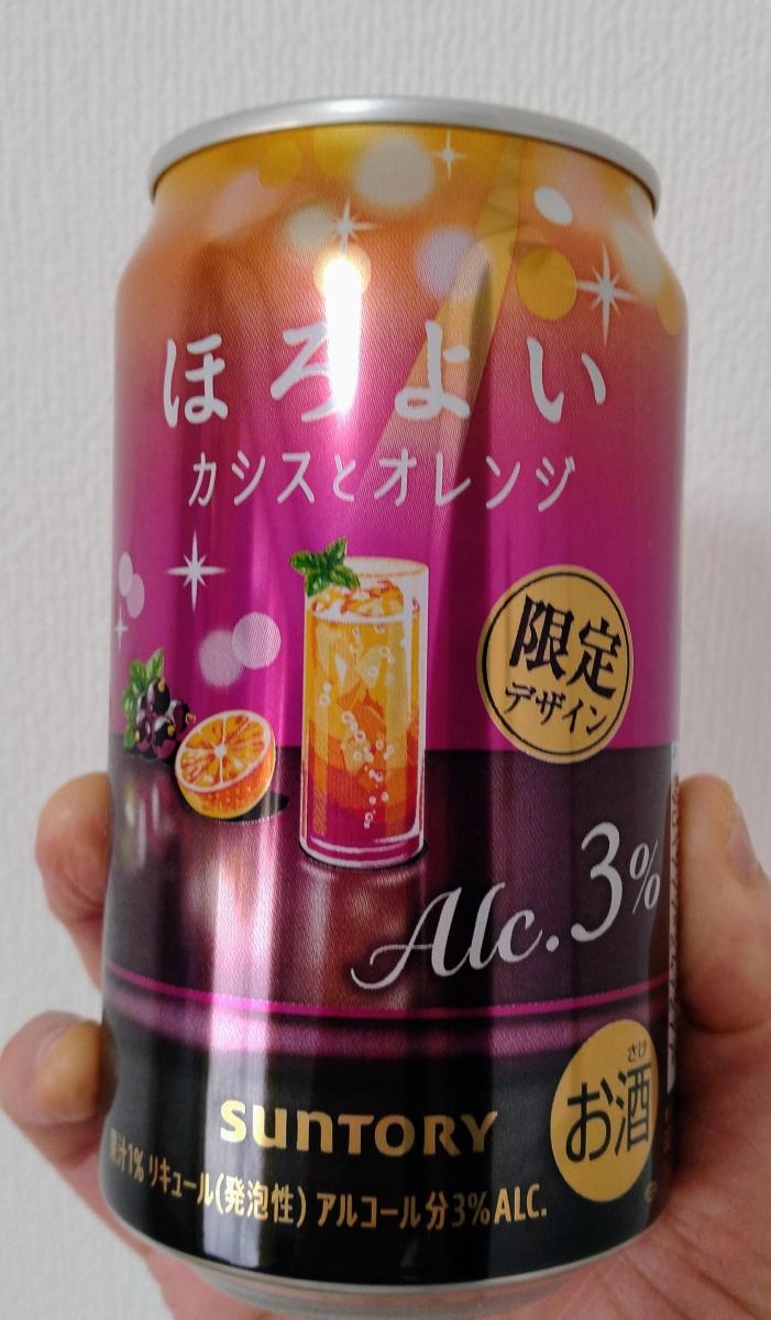 ほろよいは、アルコール3%ととても飲みやすいです。カシスとオレンジは果汁1%とありますが、フルーティでカシスの酸味も感じられ、甘くて美味しいです。程よい炭酸のシュワシュワ感もあり、ジュースのようにグイグイ飲めます。