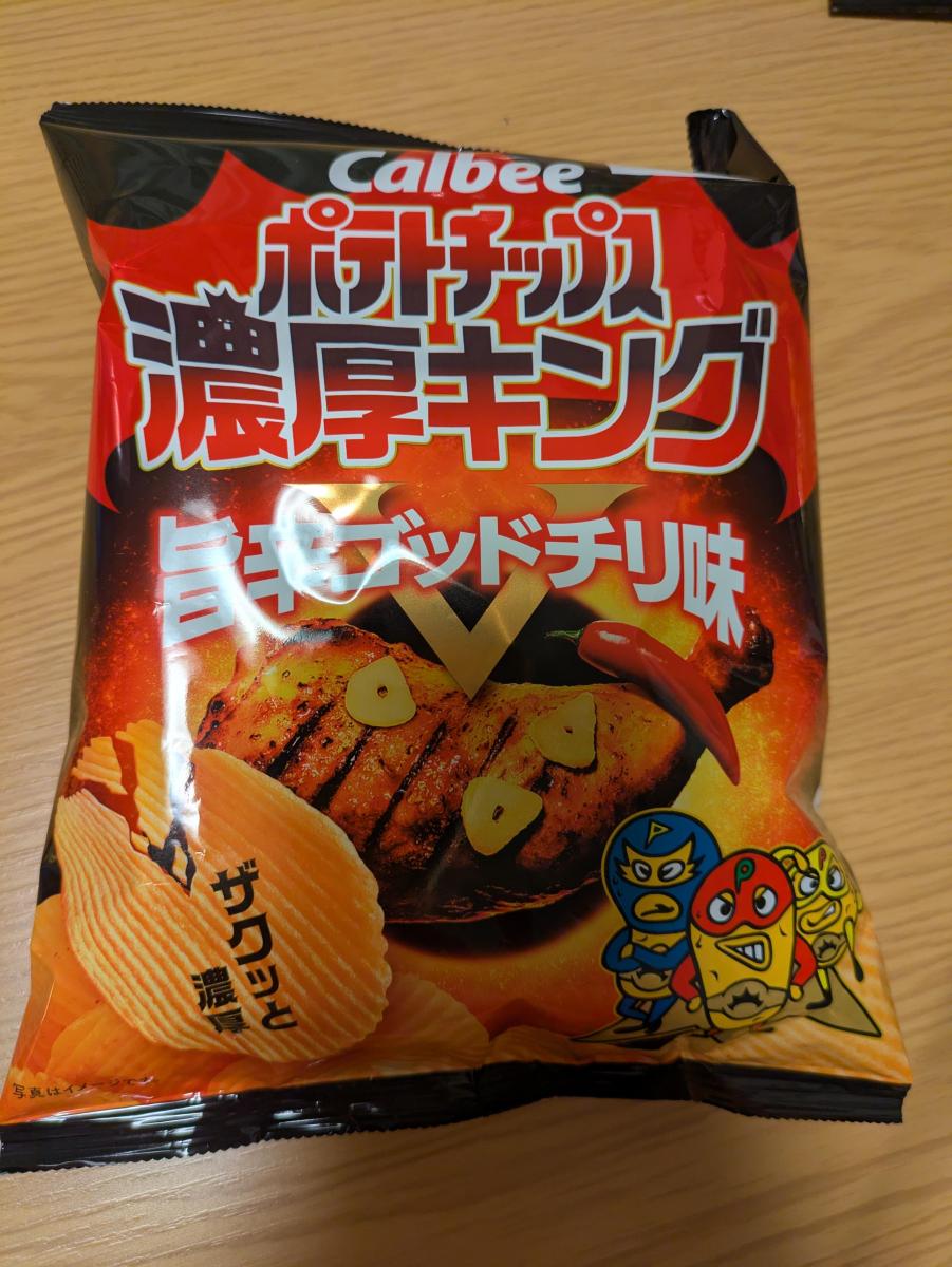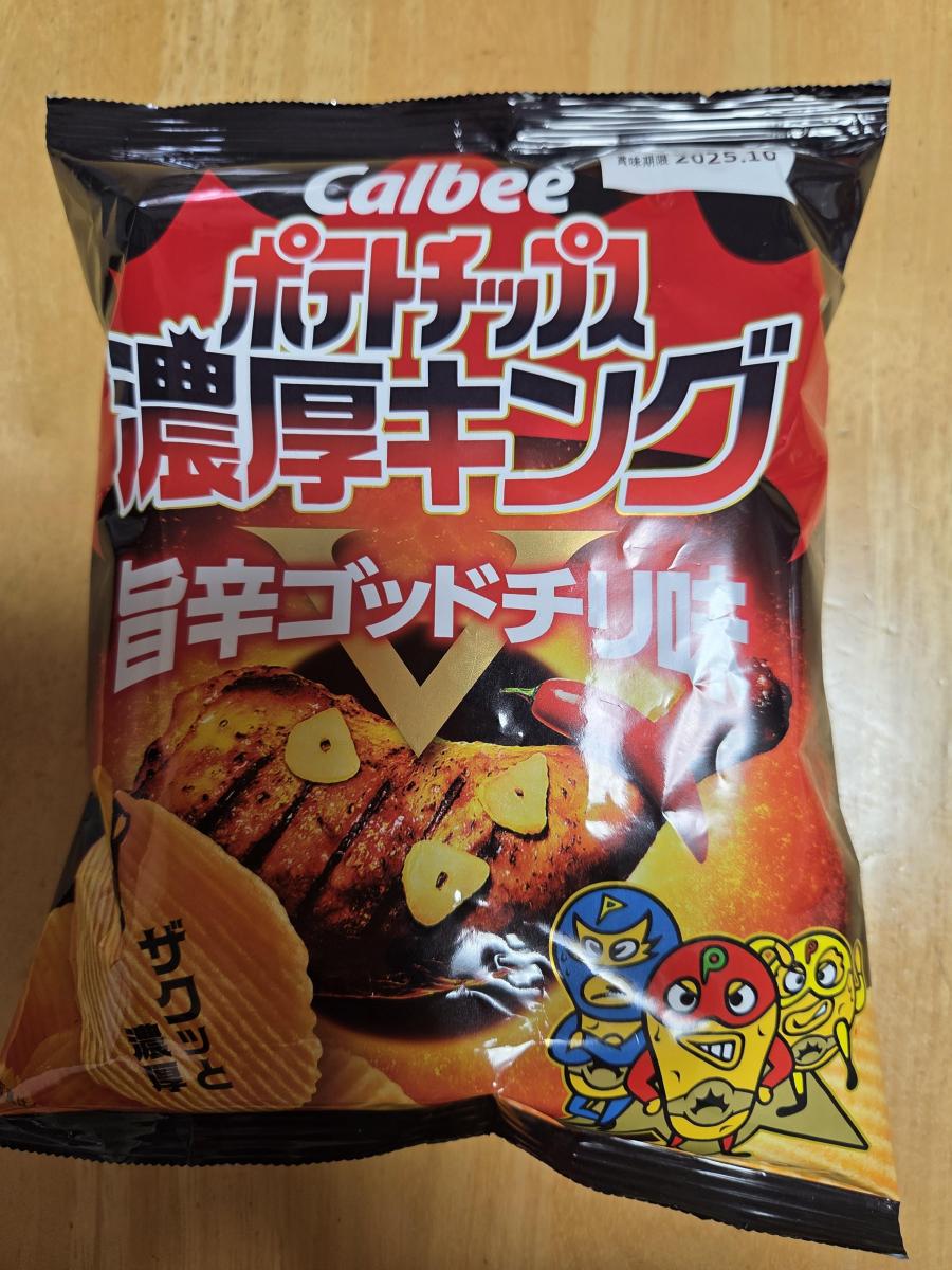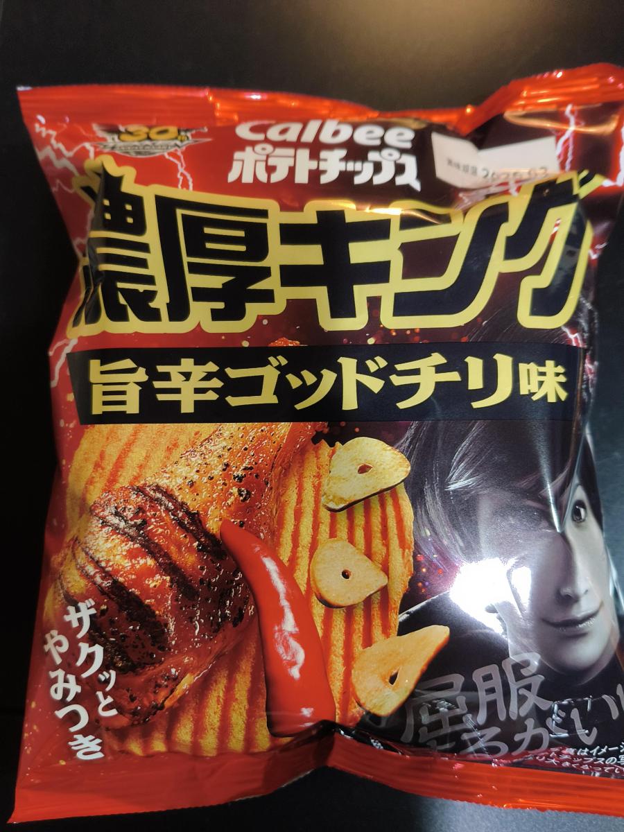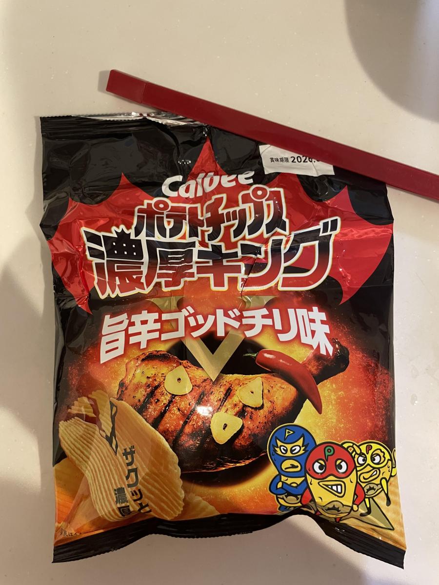 ギザギザの辛いチップスといえばカラビーなんですが最近見かけないから、初めて見かけた旨辛ゴッドチリとやらを衝動買い。にんにくがガツンときいていて辛い。辛いけれどまろやかな甘みも感じるからなんだかくせになる味。ギザギザの辛いチップスは満足感があるから◎。