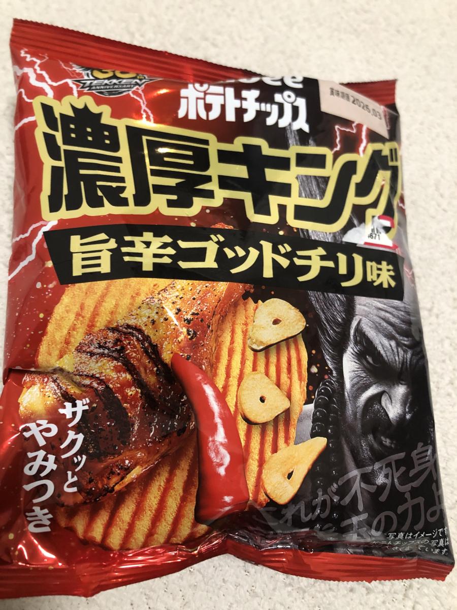 カルビー濃厚キング チリ味 鉄拳パッケージが目立っていたので購入してみました。