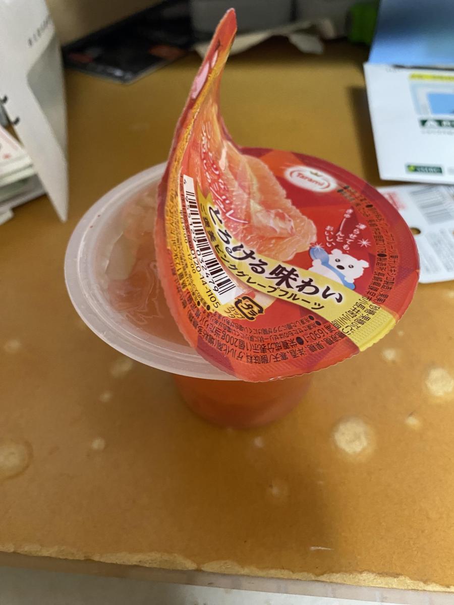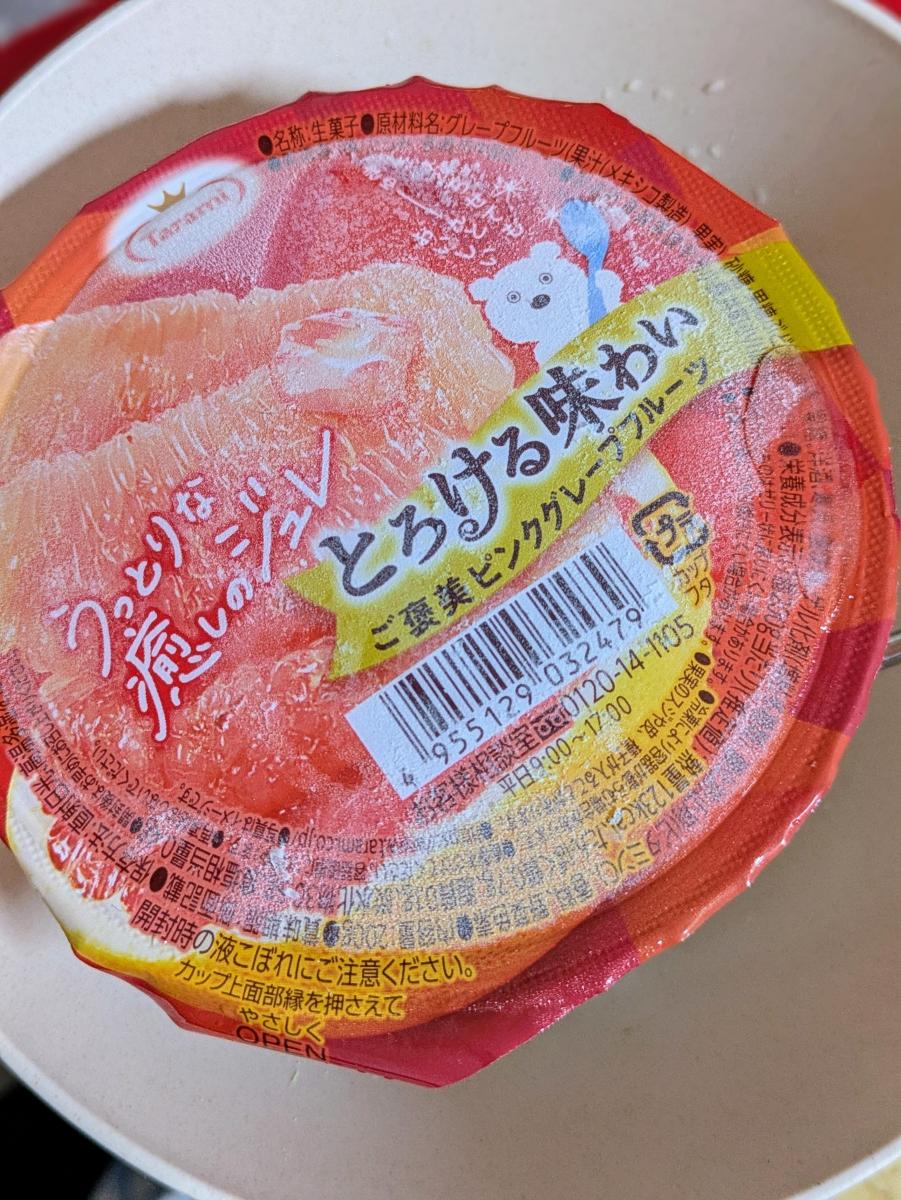 冷蔵庫で冷やして食べるとまったりやわらかいジュレ!やわらかなピンクグレープフルーツ果肉がとろける〜。