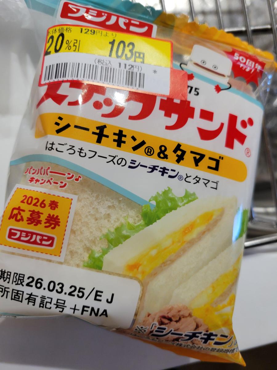シーチキンとたまごとの相性が抜群のスナックサンド でした。中身もしっかりと入っているので、満腹感もあり、とても美味しいと思います。