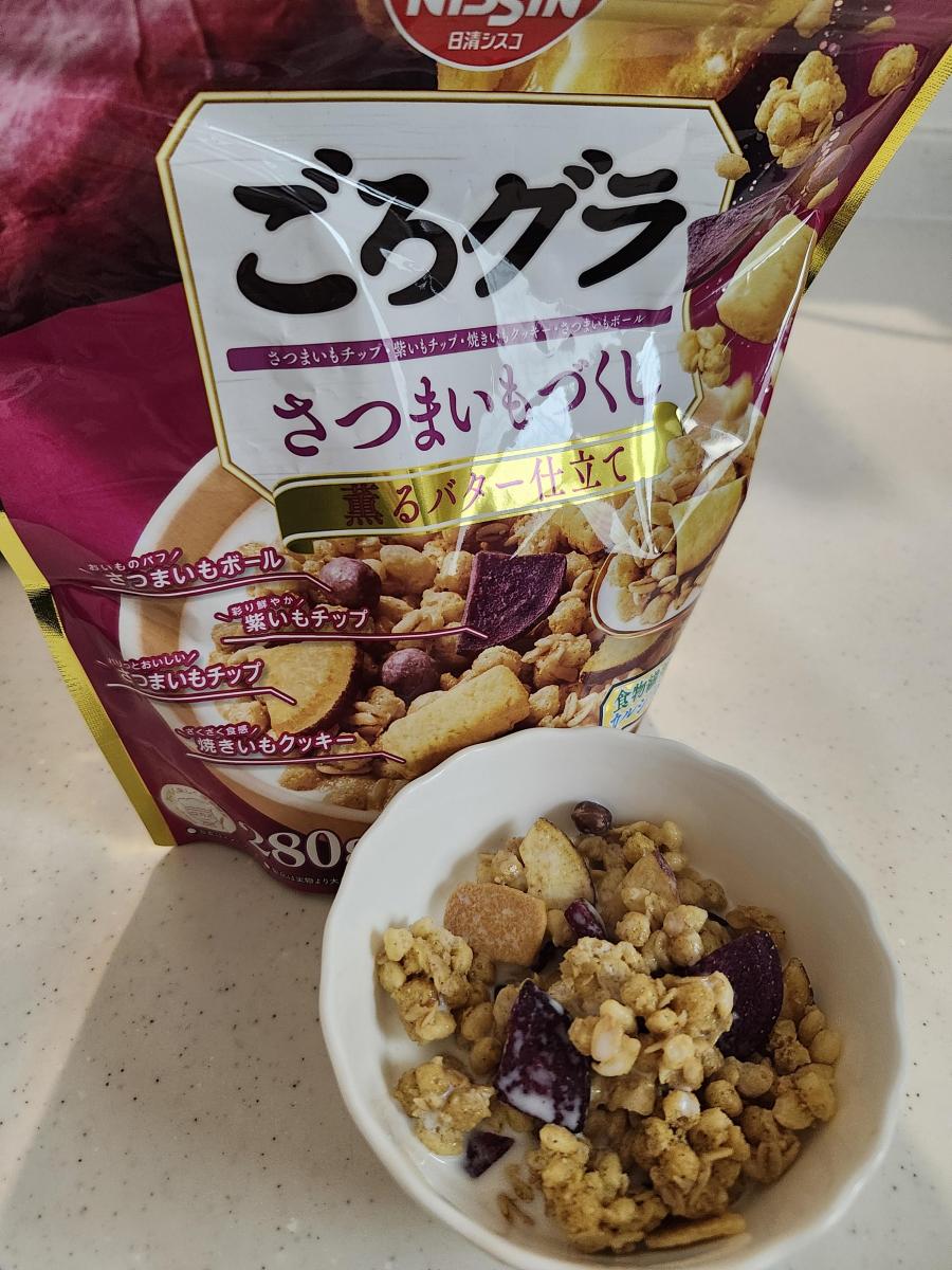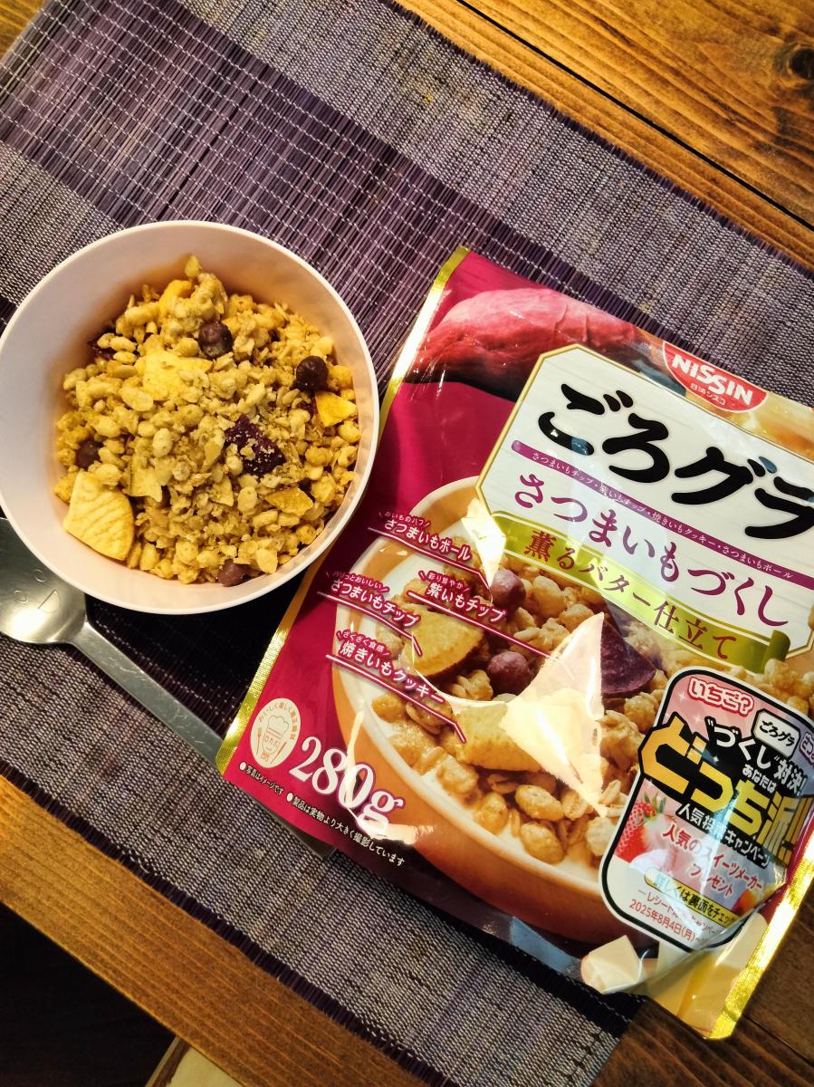ごろグラは名前の通りごろっとした具材が贅沢。味もしっかり付いてるので、おやつや朝食にぴったり。こちらのさつまいもづくし、香りも芋だし、味も芋。秋を感じました。