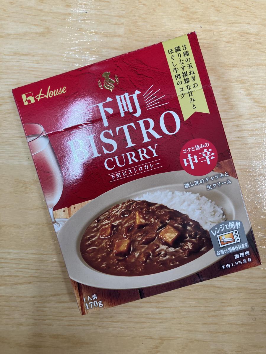 下町ビストロカレー初めて見つけましたが、老舗のお店のようなパッケージに惹かれて買ってみました。ほぐし肉がコクと旨味を出していて、玉ねぎの甘みがあり、じゃがいもはホクホクしています。よく煮込んだような味わいで、辛口ですが、辛すぎず後からピリッと感がやってきます。レンチンは箱のまま中のパウチを切らずできるのでとても便利です。コスパよくこのおいしさは大満足です。