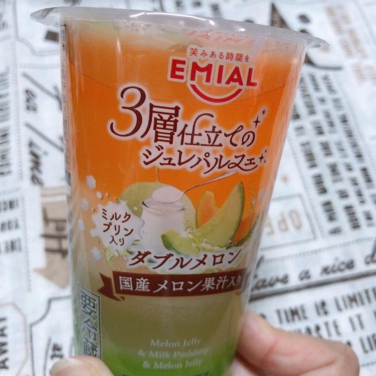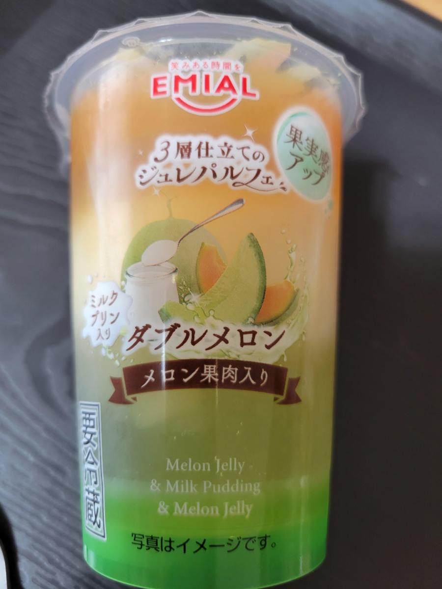 エミアルのデザートは、大好きです。3層仕立てのジュレパフェの、ダブルメロンに出会えたので、さっそく買いました。