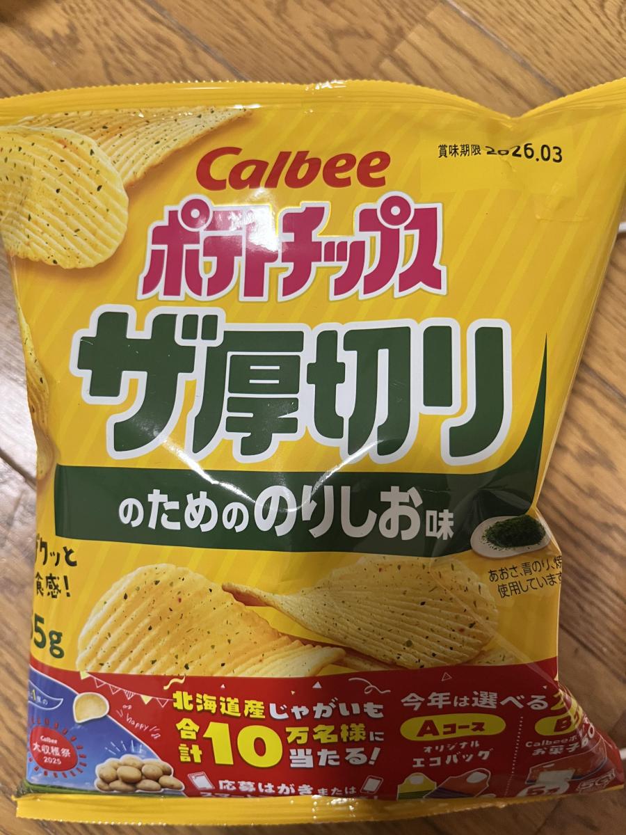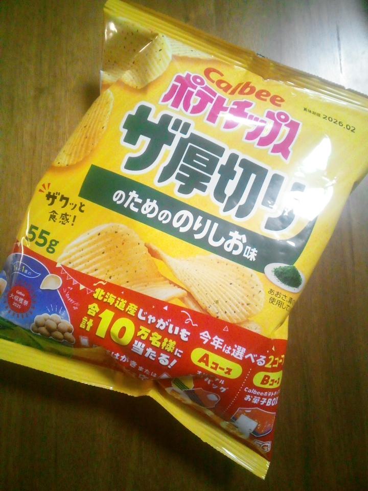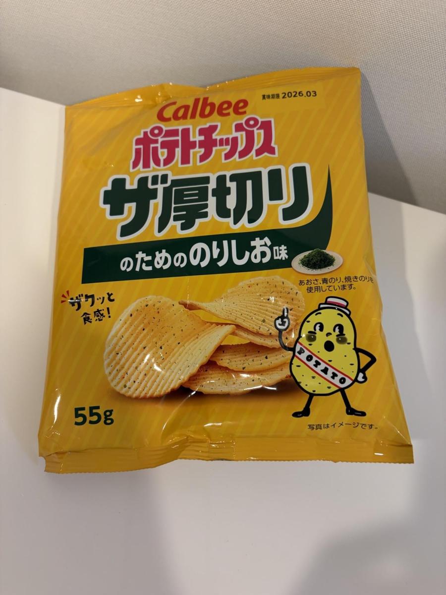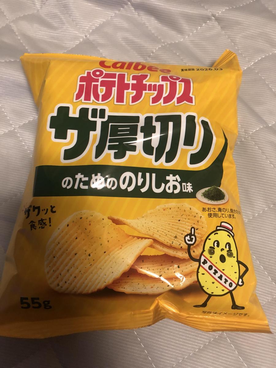 こちらのポテトチップスは、定番の「のりしお」味ですが、厚切りタイプということで、とても食べ応えがありました!