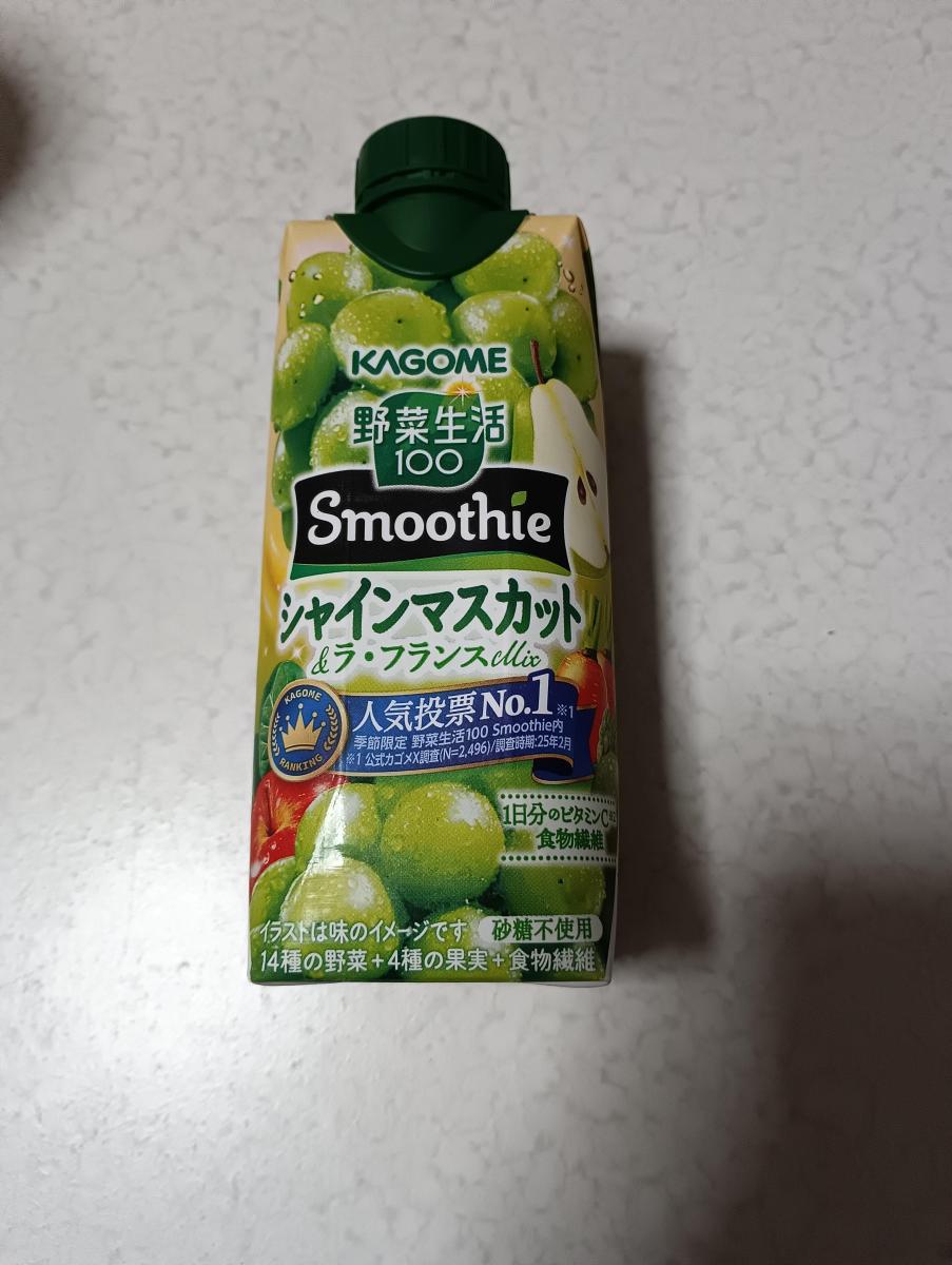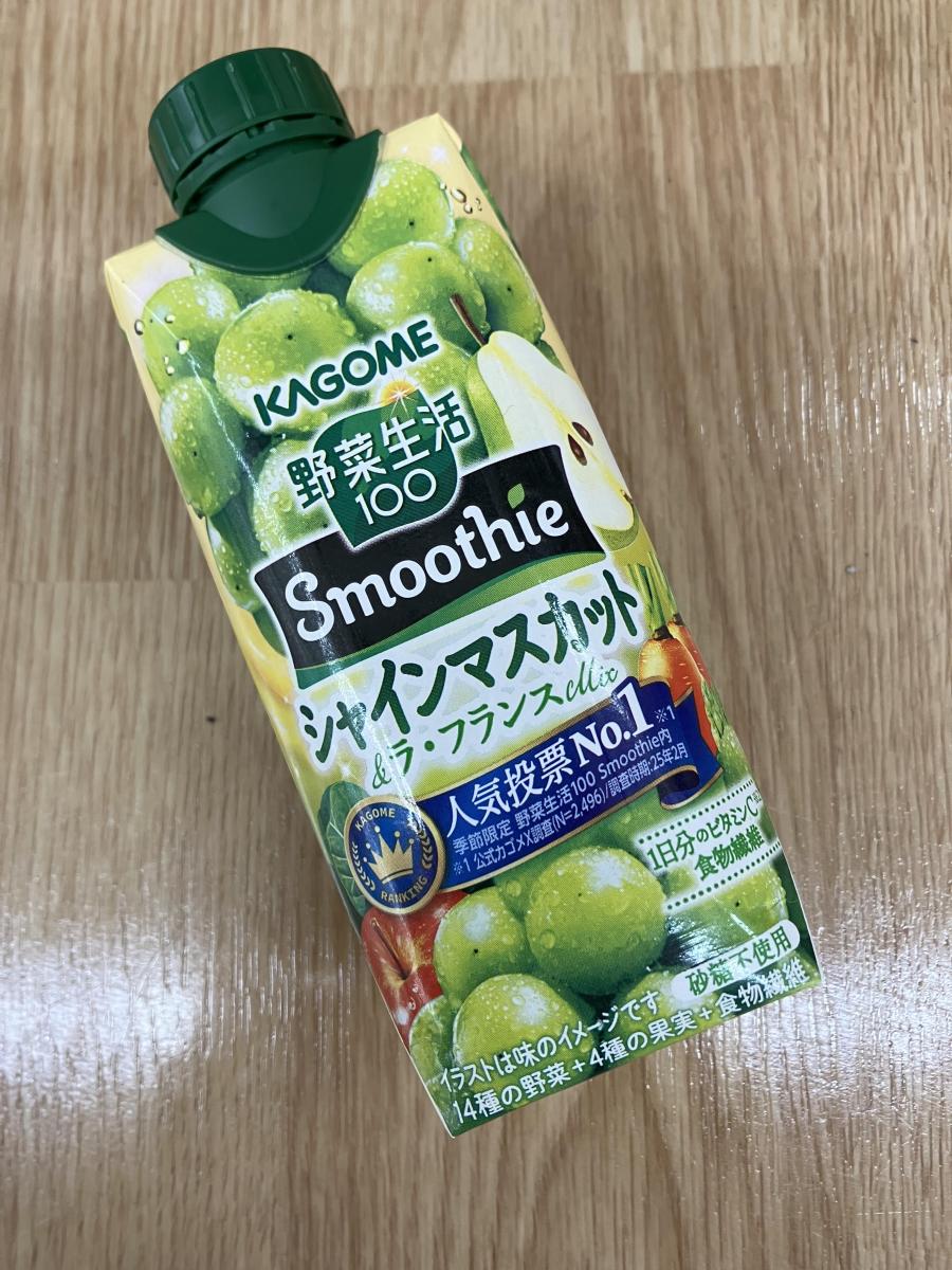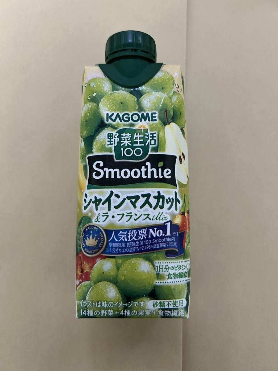 体調があまり良くなく食欲がなかった日に、カゴメ「野菜生活100 Smoothie シャインマスカット&ラ・フランスMix」を購入。砂糖不使用なのが嬉しく、自然な甘さでごくごく飲めます。爽やかなマスカットの香りと、ラ・フランスのやさしい甘みが絶妙にマッチしていて、癒される美味しさ。飲むだけで気分もすっきりする一本です。