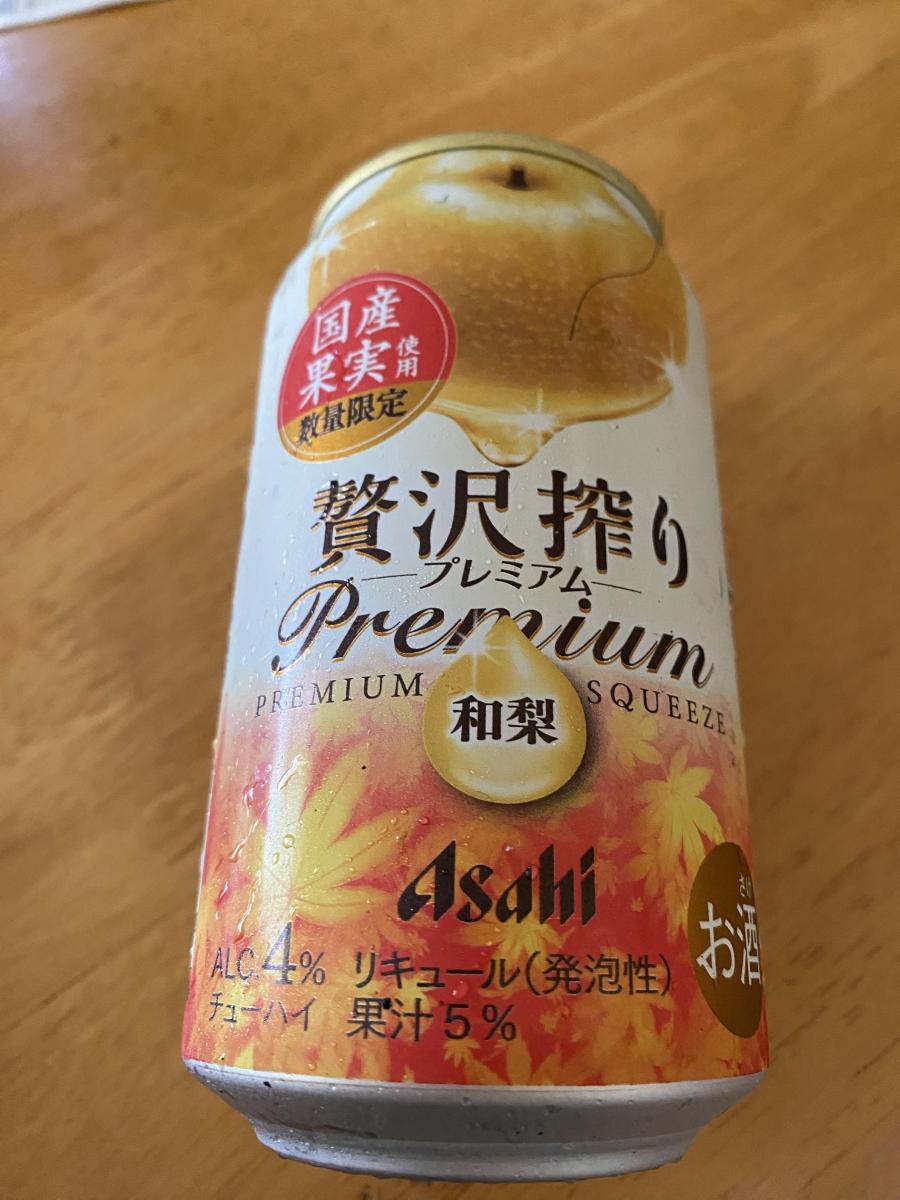 贅沢搾りプレミアム、秋の果物代表の梨が発売されるのを待っていました。しっかりとジューシーな梨の味わいが楽しめますが、贅沢搾りにしては軽い飲み心地です。PREMIUMなのに果汁5%なんですね。後味もスッキリ、甘さも控えめで、いつものPREMIUMを期待して飲むと少し全体的に物足りないかな。