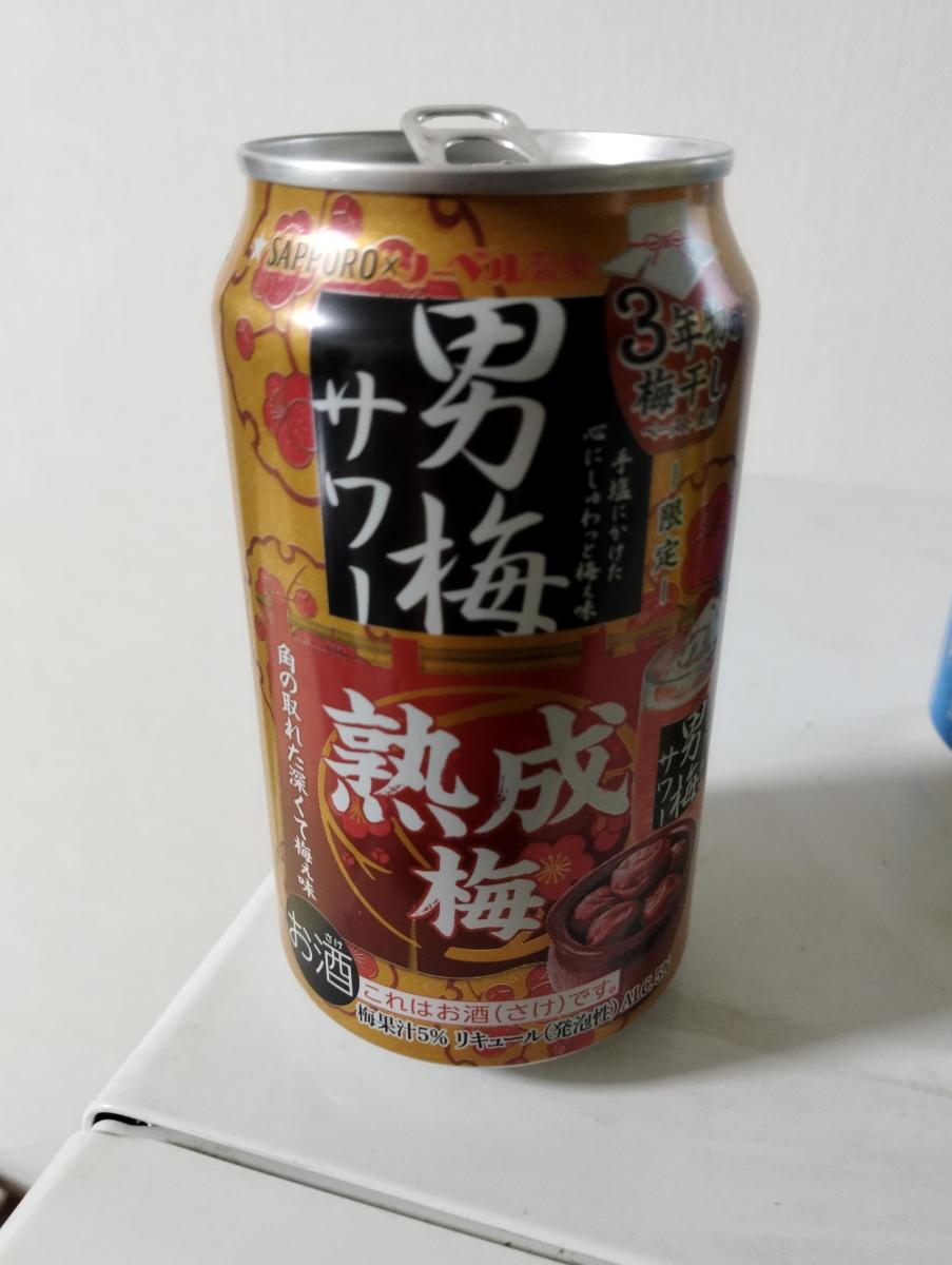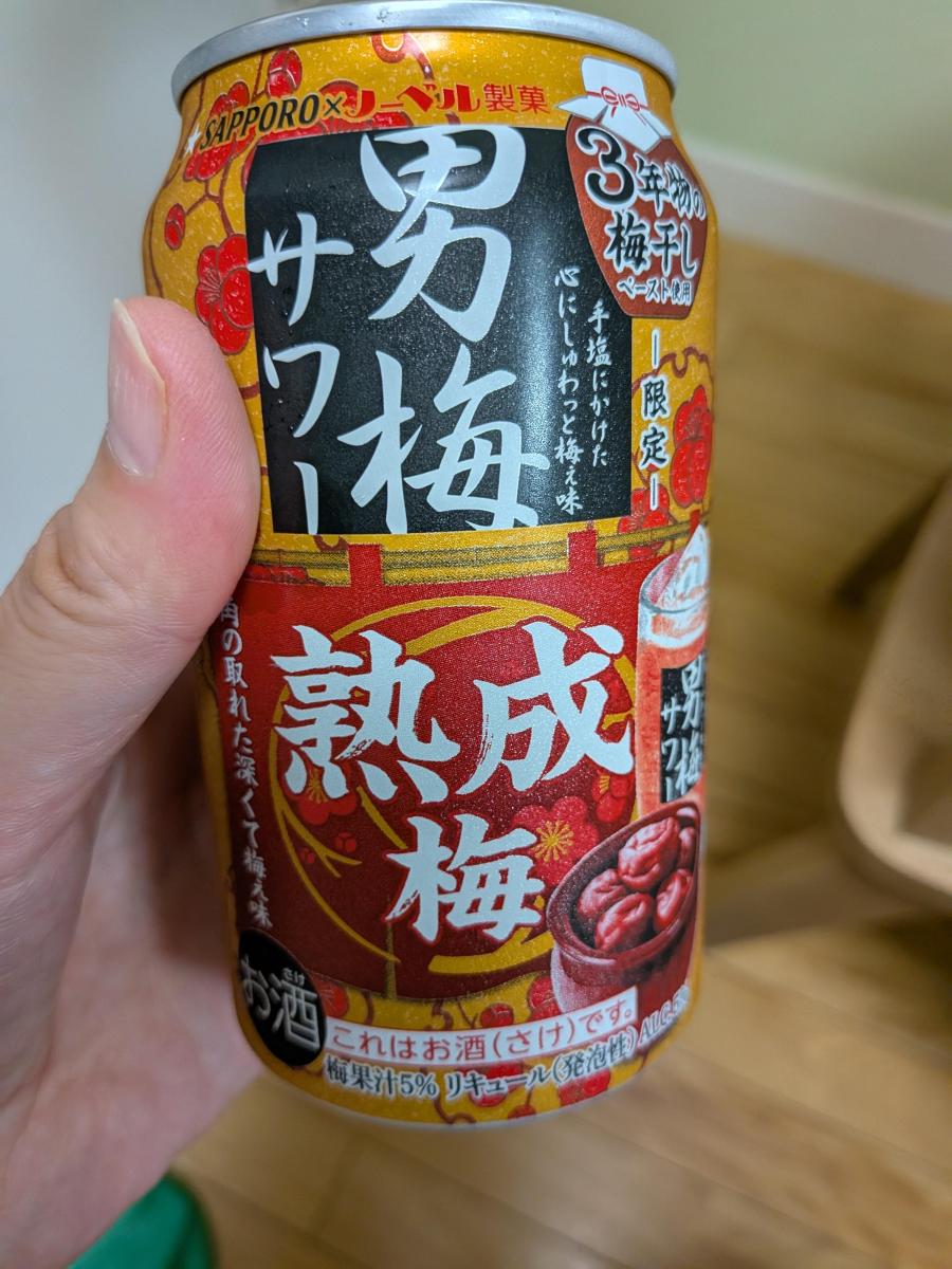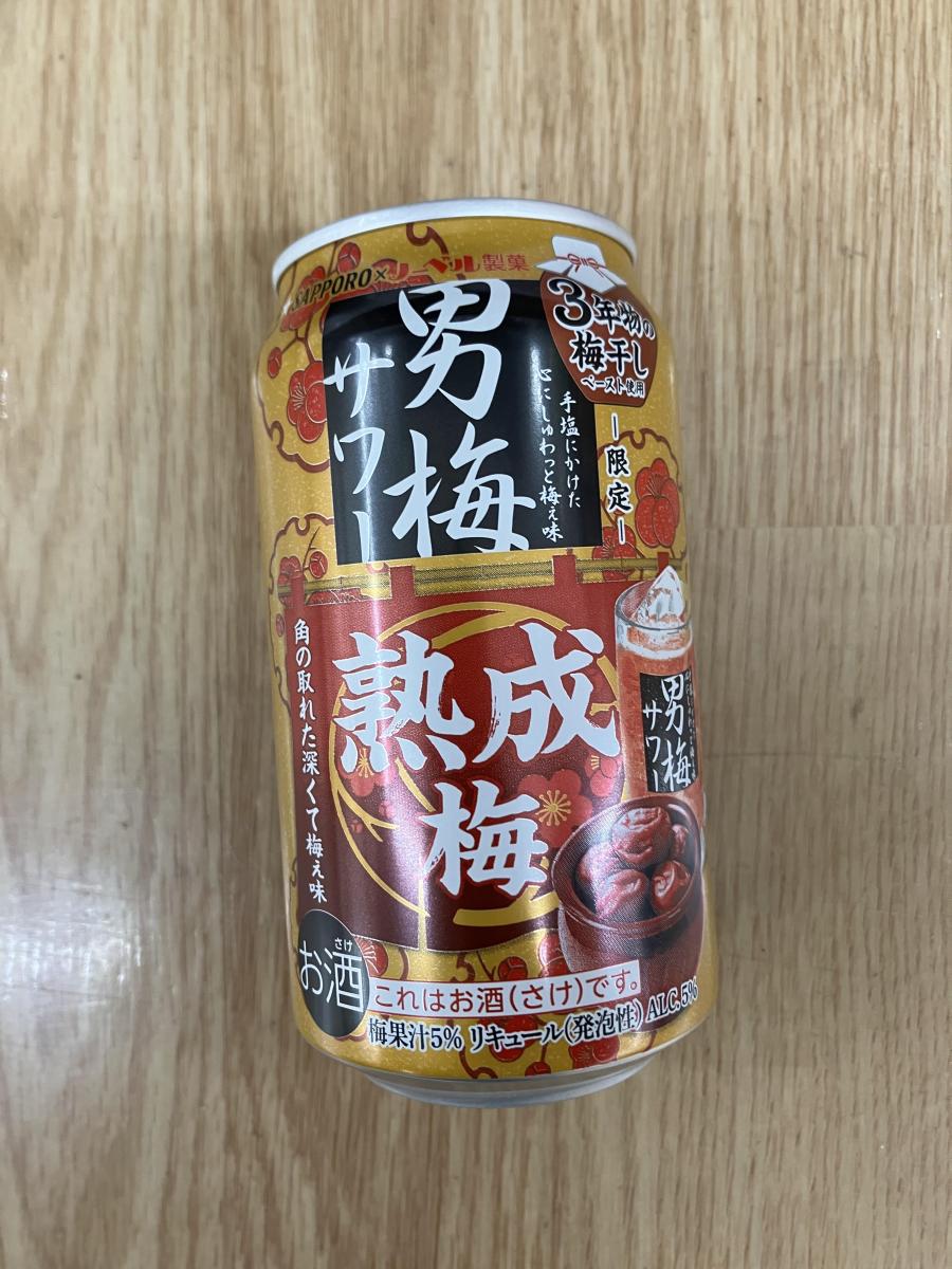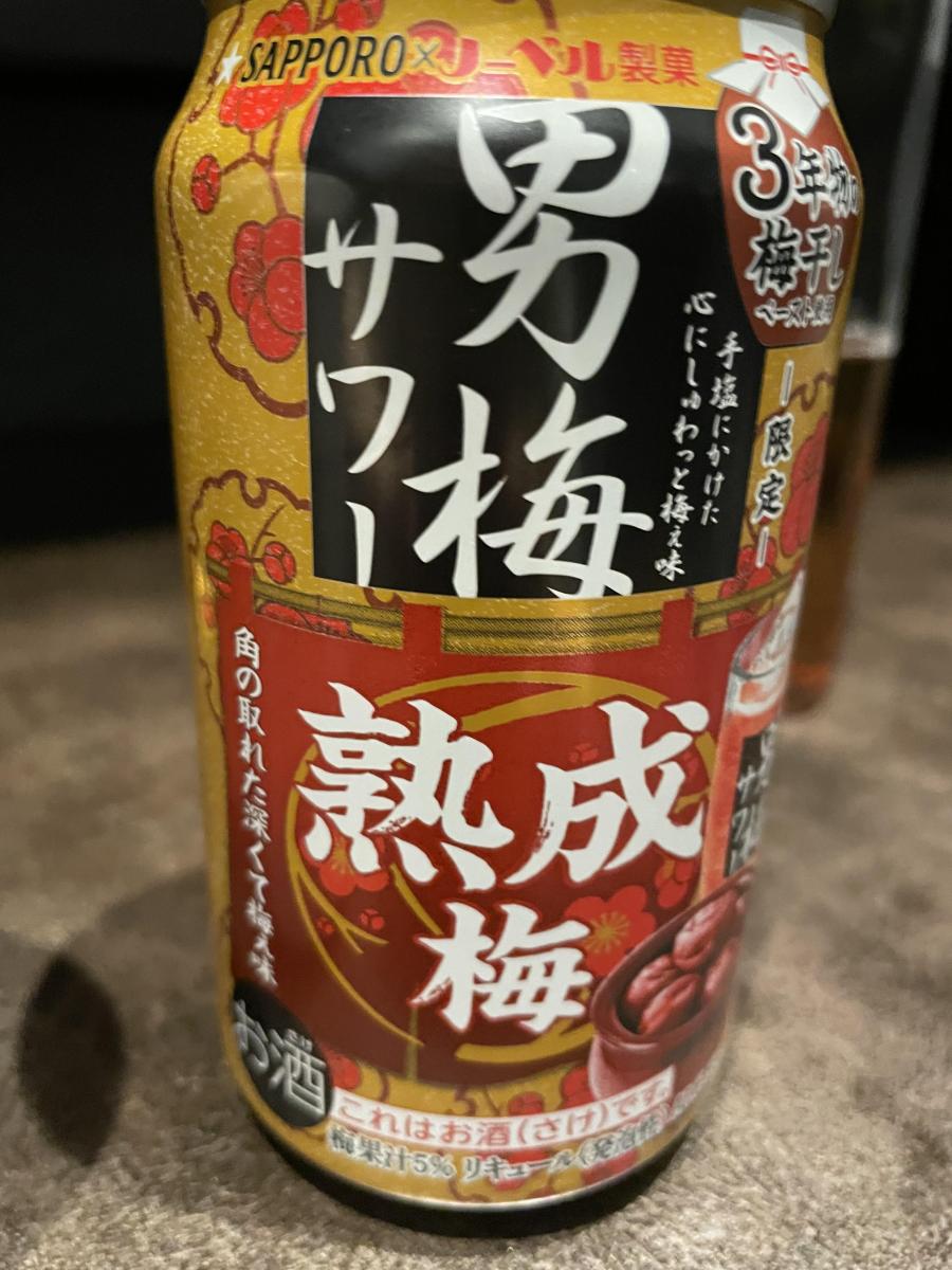 男梅サワー大好きです。見ているだけでしょっぱそうな瓶に入った梅が和風のパッケージ缶にのっています。