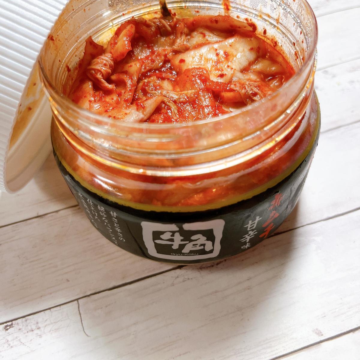 牛角キムチ 甘辛味は、食べやすくまろやかで美味しかったです。辛すぎずに、酸味も程よくて、そのままでも美味しいですが、焼肉とサンチュと一緒に食べると本当に美味しかったです。ボトルタイプの容器も、扱いやすくて食べたい量を取りやすくて良かったです。